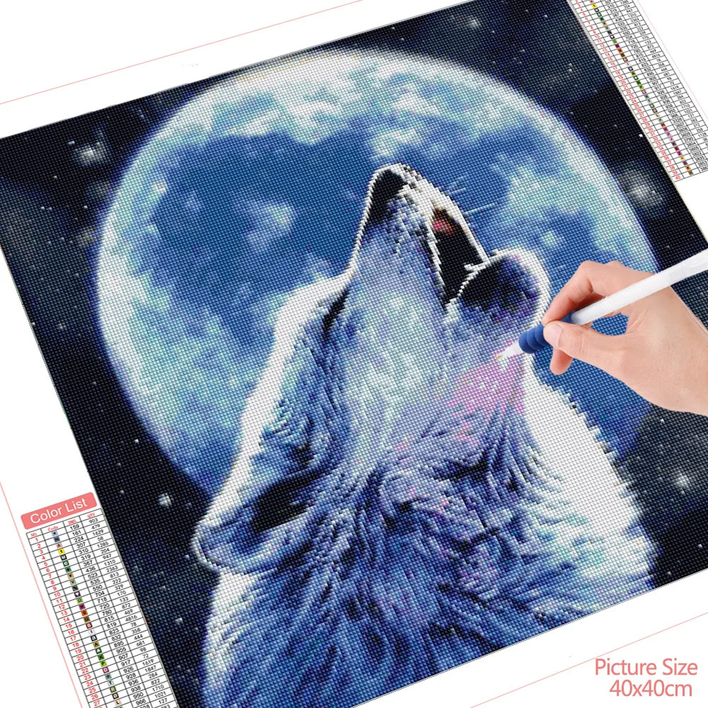 Набор для алмазной живописи HUACAN, алмазная 5d Вышивка волк, луна, мозаика с изображением животных, Ночной пейзаж, вышивка крестиком, домашний декор