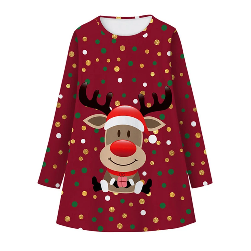 Детское платье с длинным рукавом, с мультяшным принтом, на Рождество