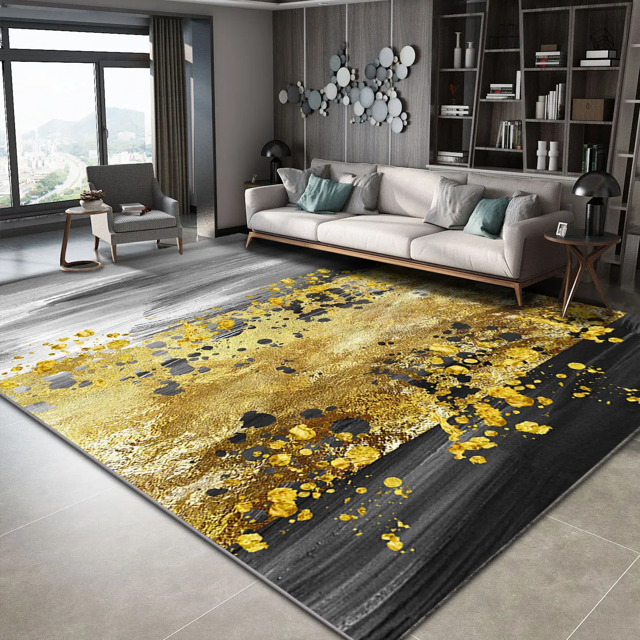 Мраморный ковер для гостиной, ковер из полиэстера, золотые линии, з...
