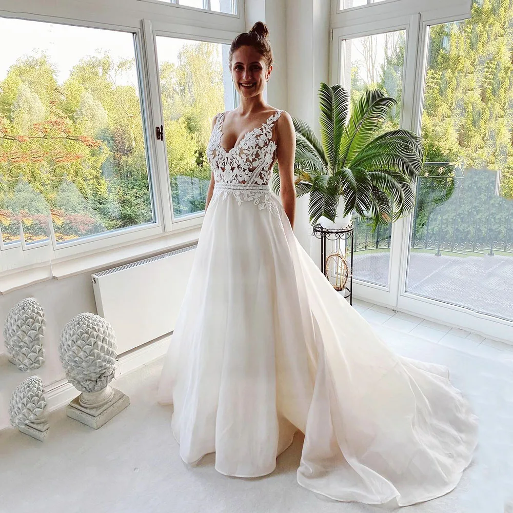 Простые Свадебные платья 2021 сексуальные с V-образным вырезом съем...