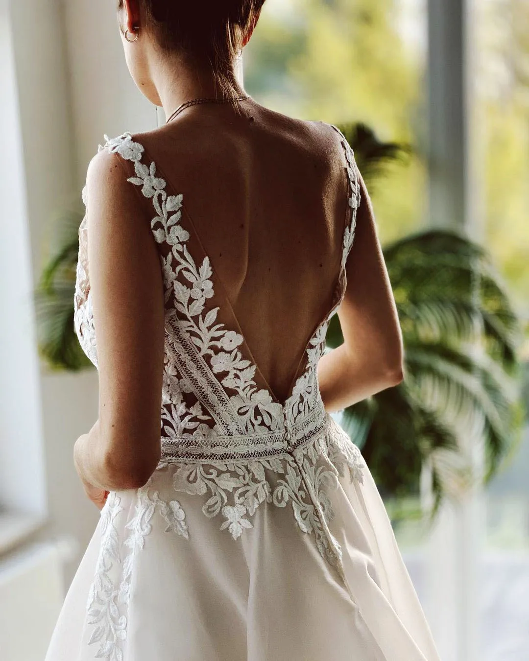 Платье свадебное с V-образным вырезом, открытой спиной и блестками