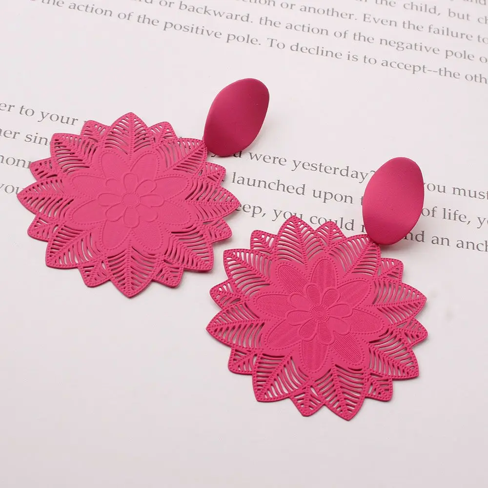 Новые женские серьги с крупным цветочным узором в винтажном стиле
