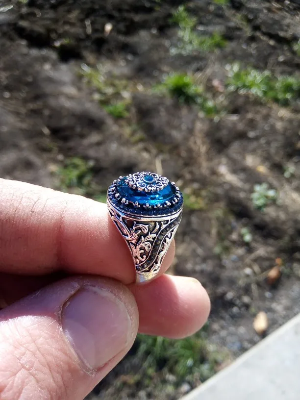 Винтажное серебряное мужское кольцо ручной работы, классическое резное инкрустированное синим цирконием кольцо в стиле панк для мужчин и женщин, ювелирные изделия для свадебной вечеринки