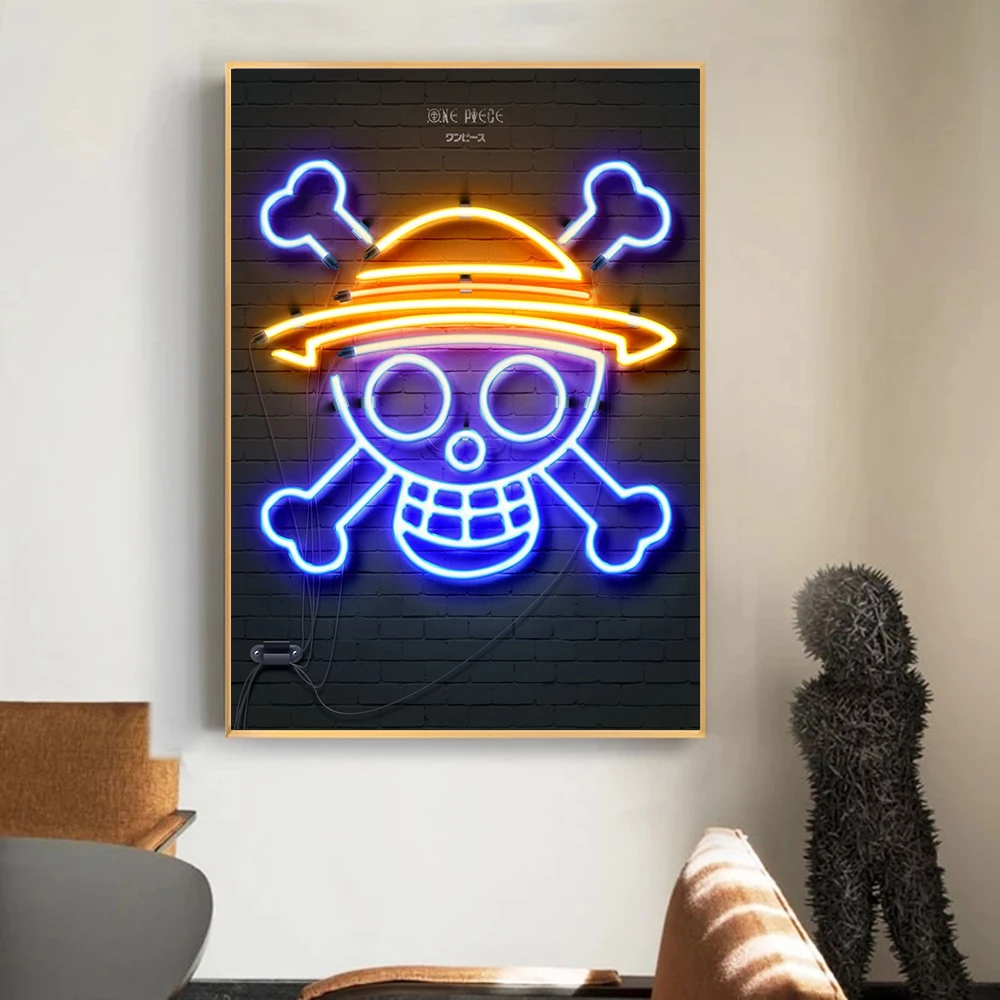 Холщовые плакаты и принты, Настенная картина, Аниме One Piece, виртуальная неоновая картина, Куадрос, гостиная, украшение для дома, модульное