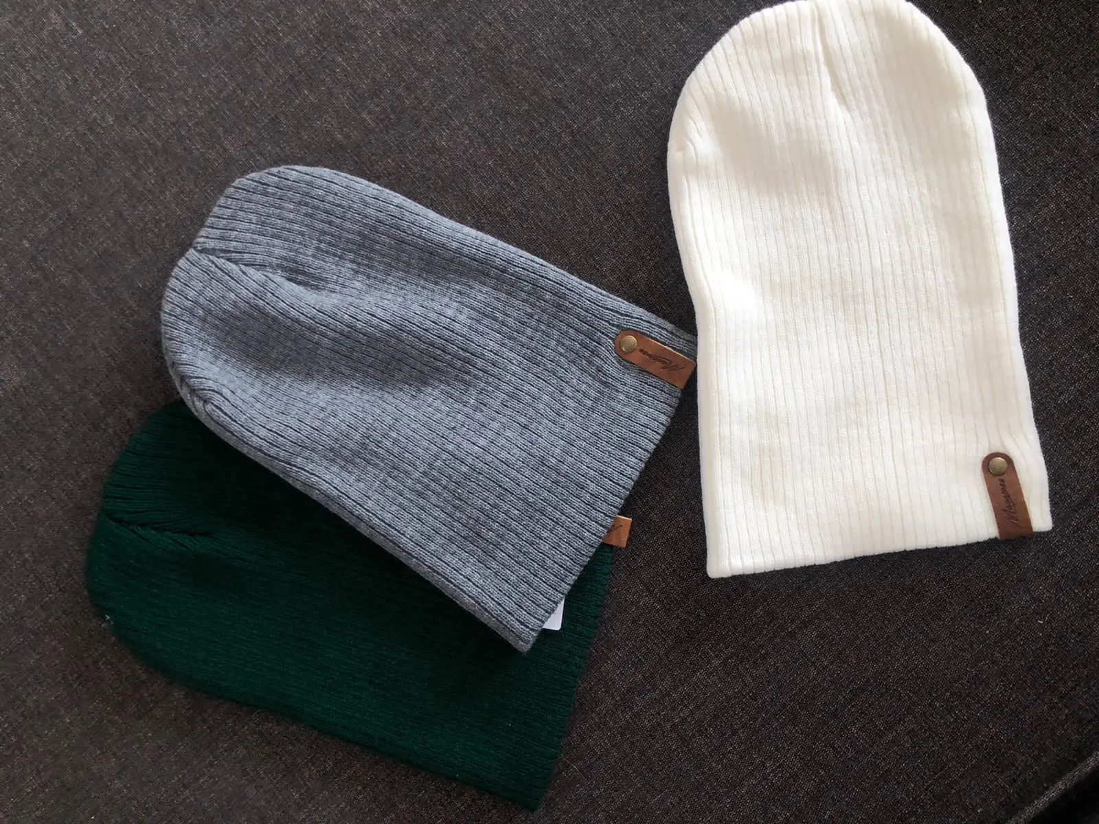 Теплые удобные шапки, яркие цвета, как на изображении.