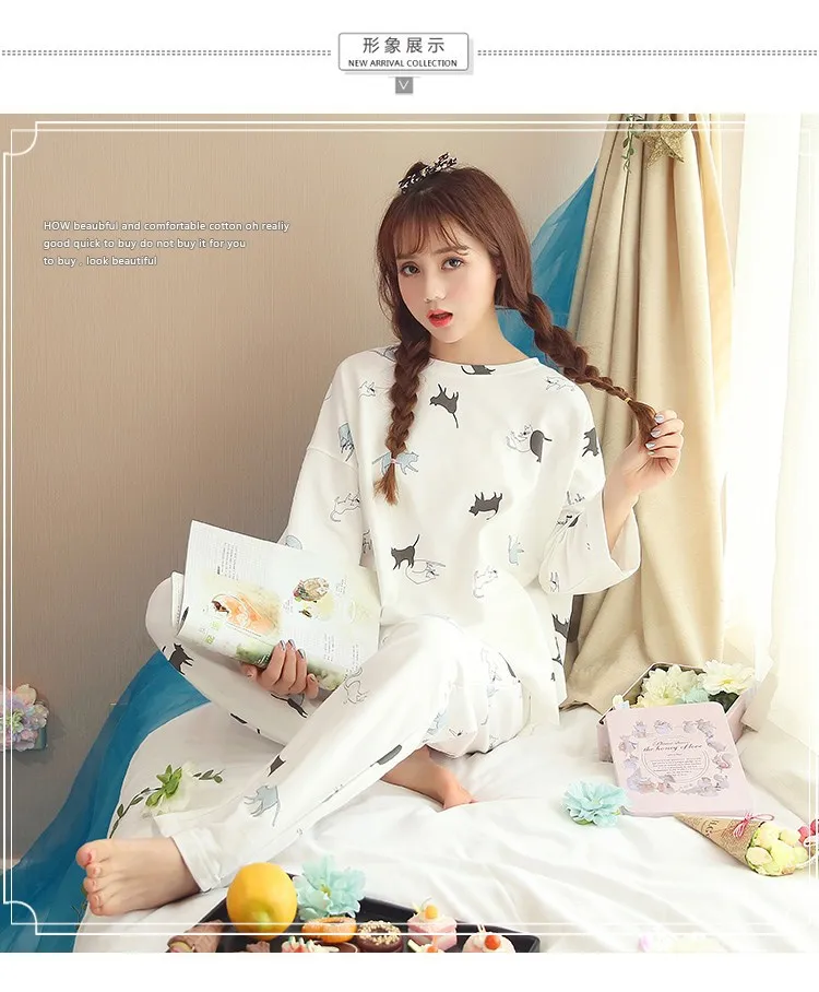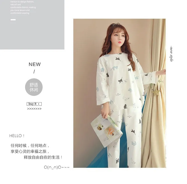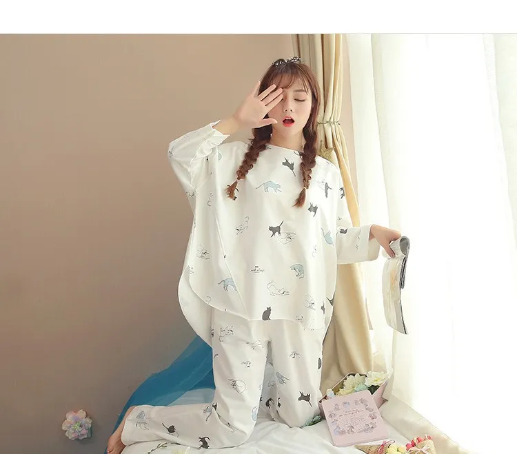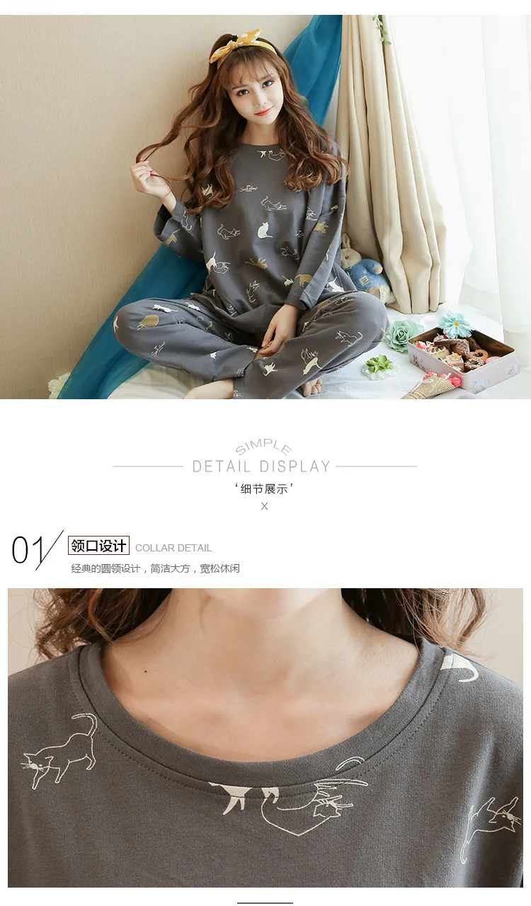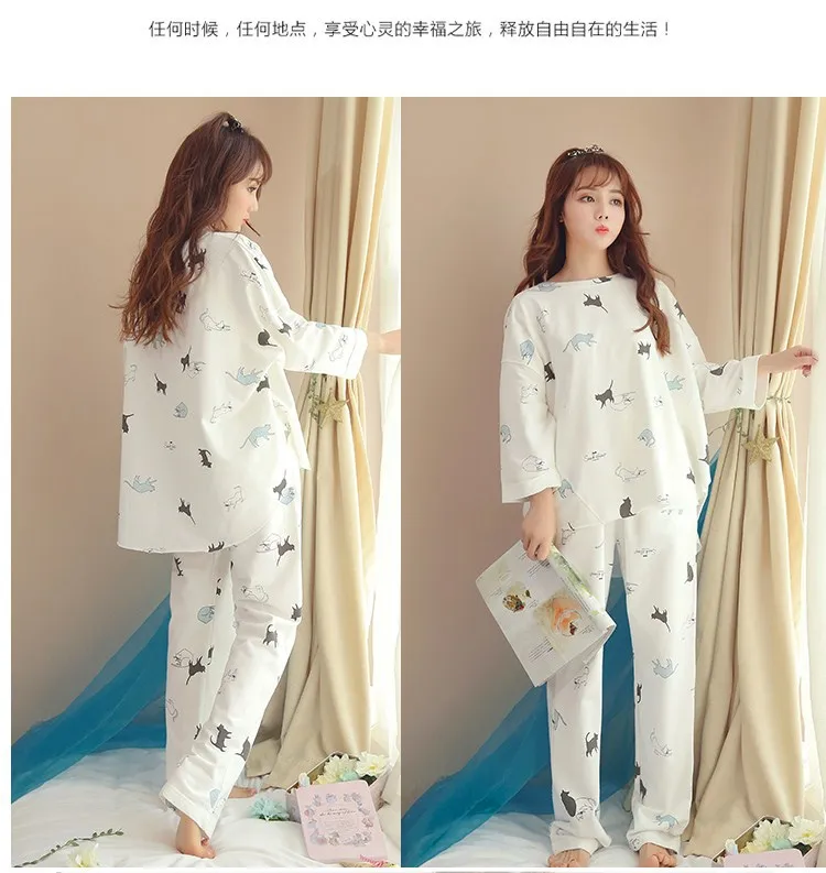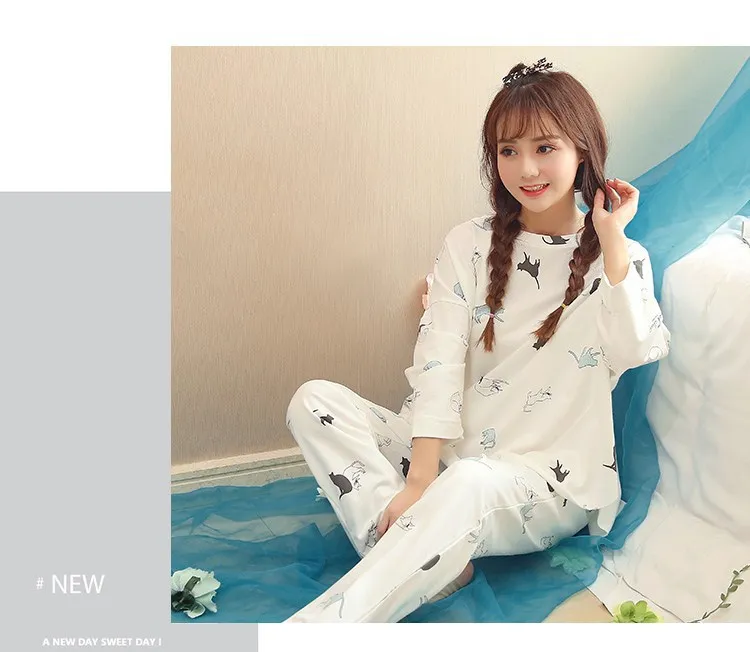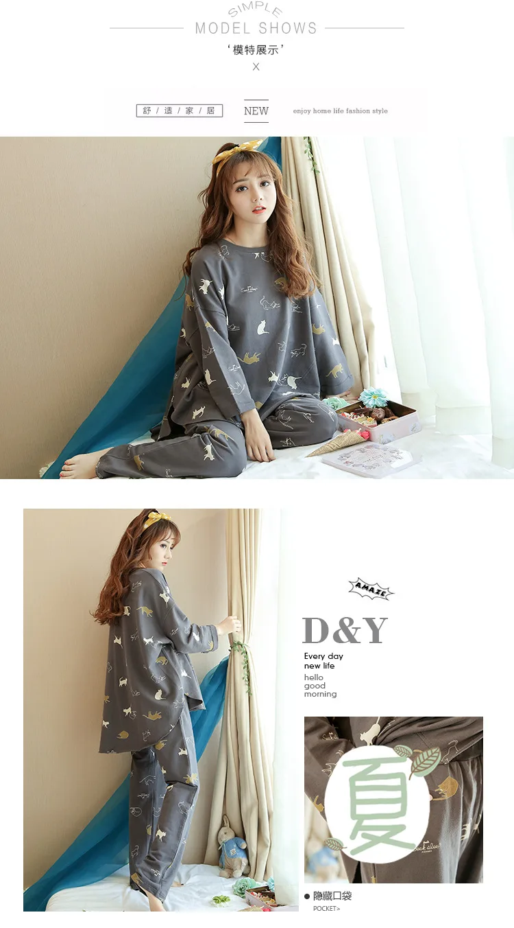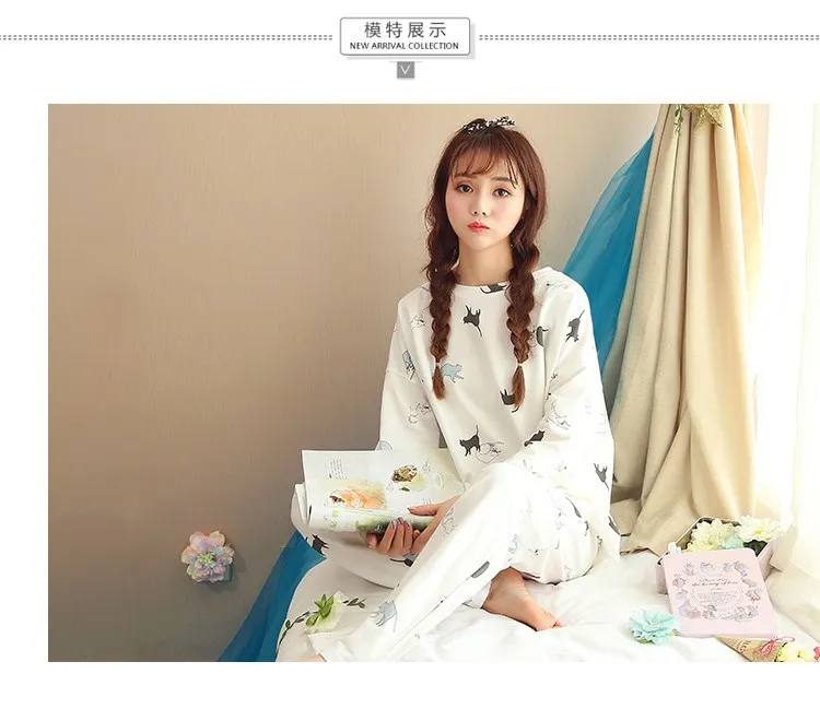 Пижама женская с длинным рукавом, милая Корейская домашняя одежда д...