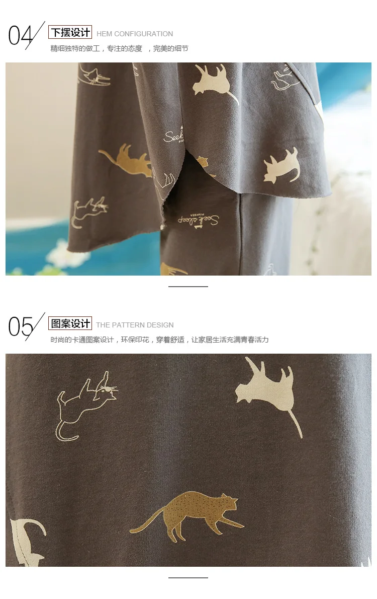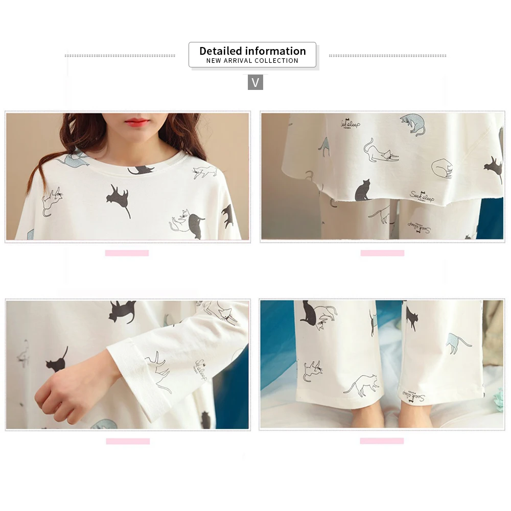 Пижама с круглым вырезом с длинными рукавами и рисунком кота + штан...