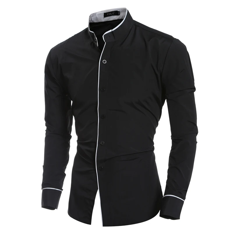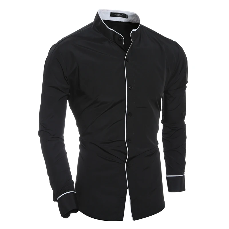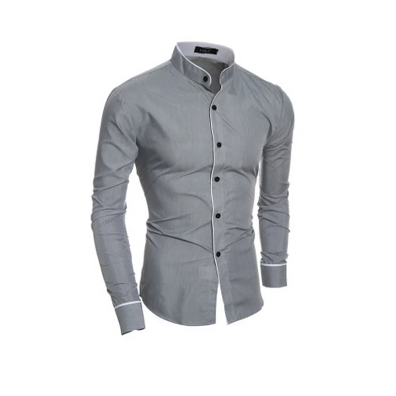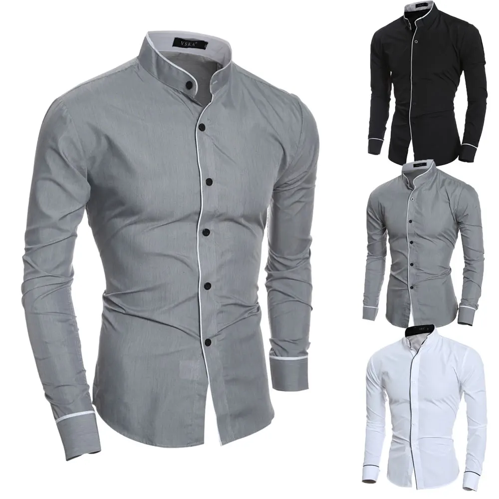 Мужская Однотонная рубашка с воротником-стойкой и длинными рукавами