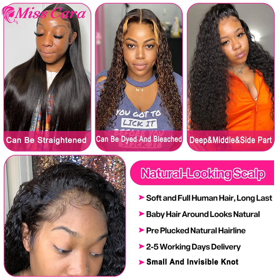 Miss Cara 13x4 Lace Front Human Hair Wigs PrePlucked 5x5 Closure Wig 8-30 Inch Peruvian Water Wave Lace Frontal Wig 180% Remy