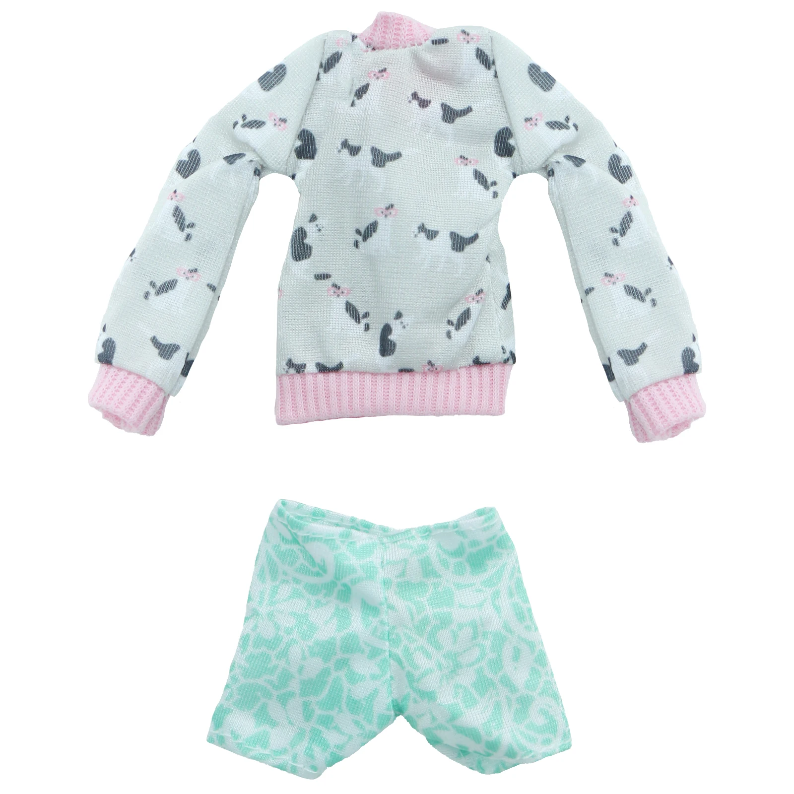 1 комплект модный наряд для куклы BJDBUS с длинными рукавами, рубашка с рисунком животного, зеленые короткие брюки, Одежда для куклы Барби, аксессуары, игрушки