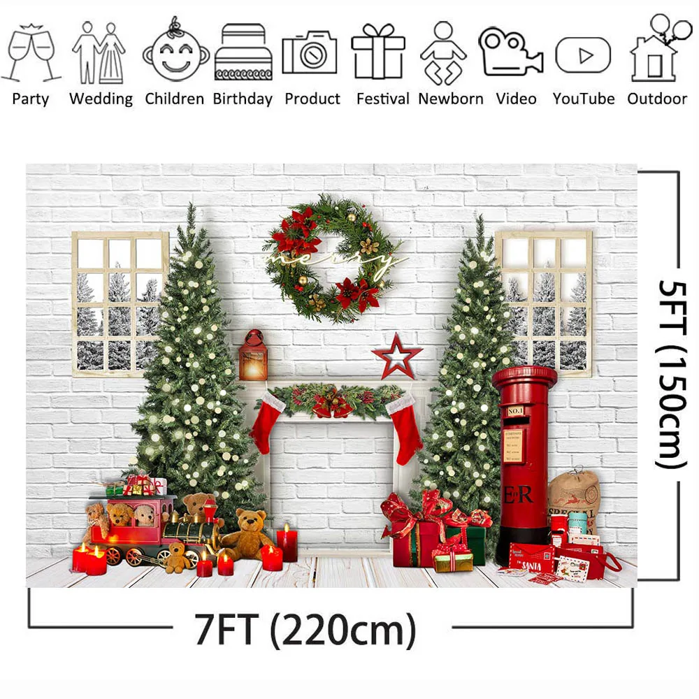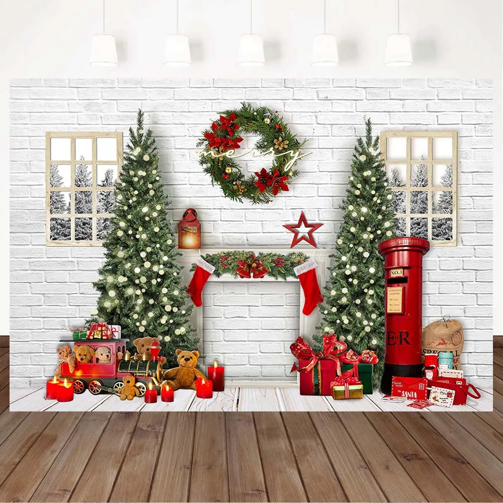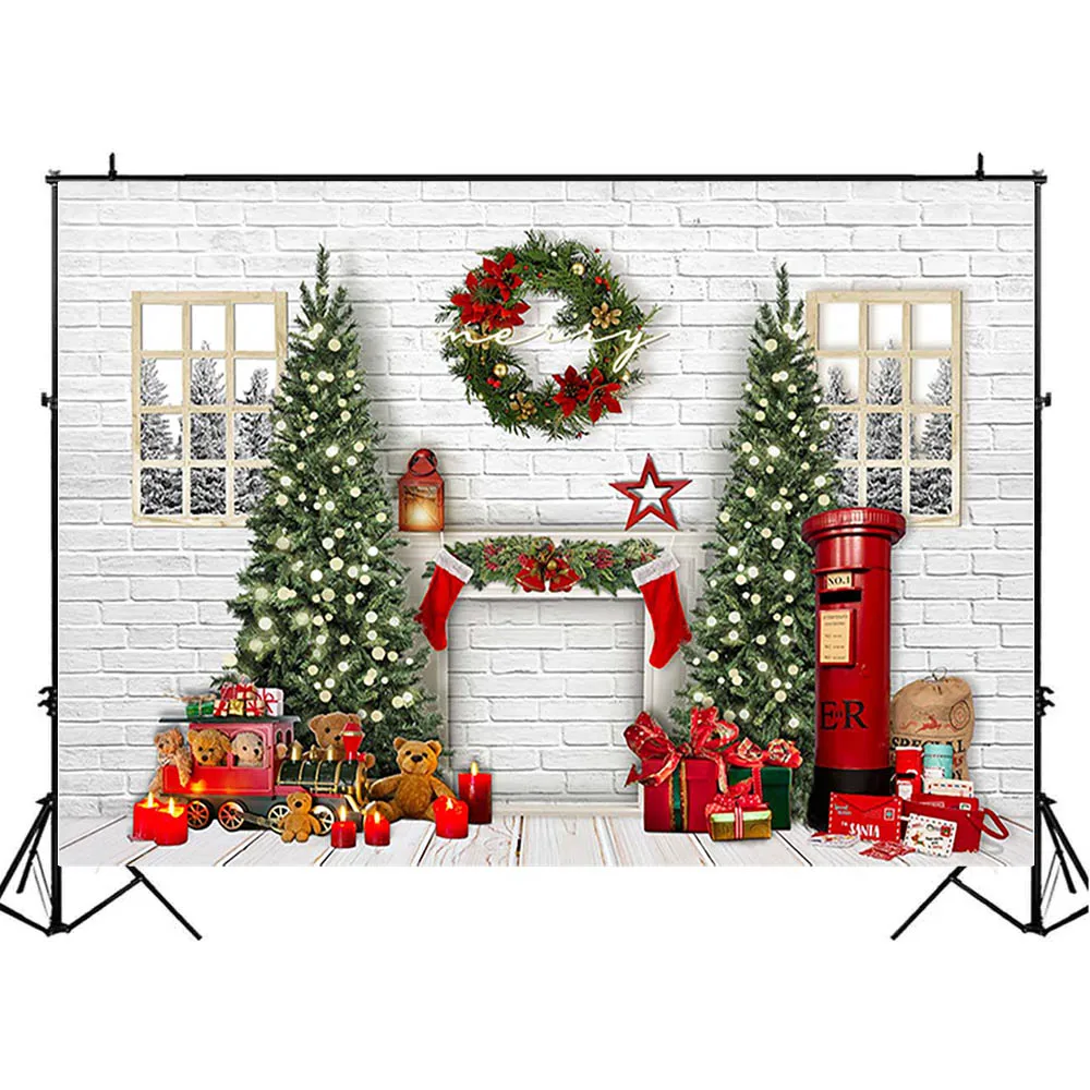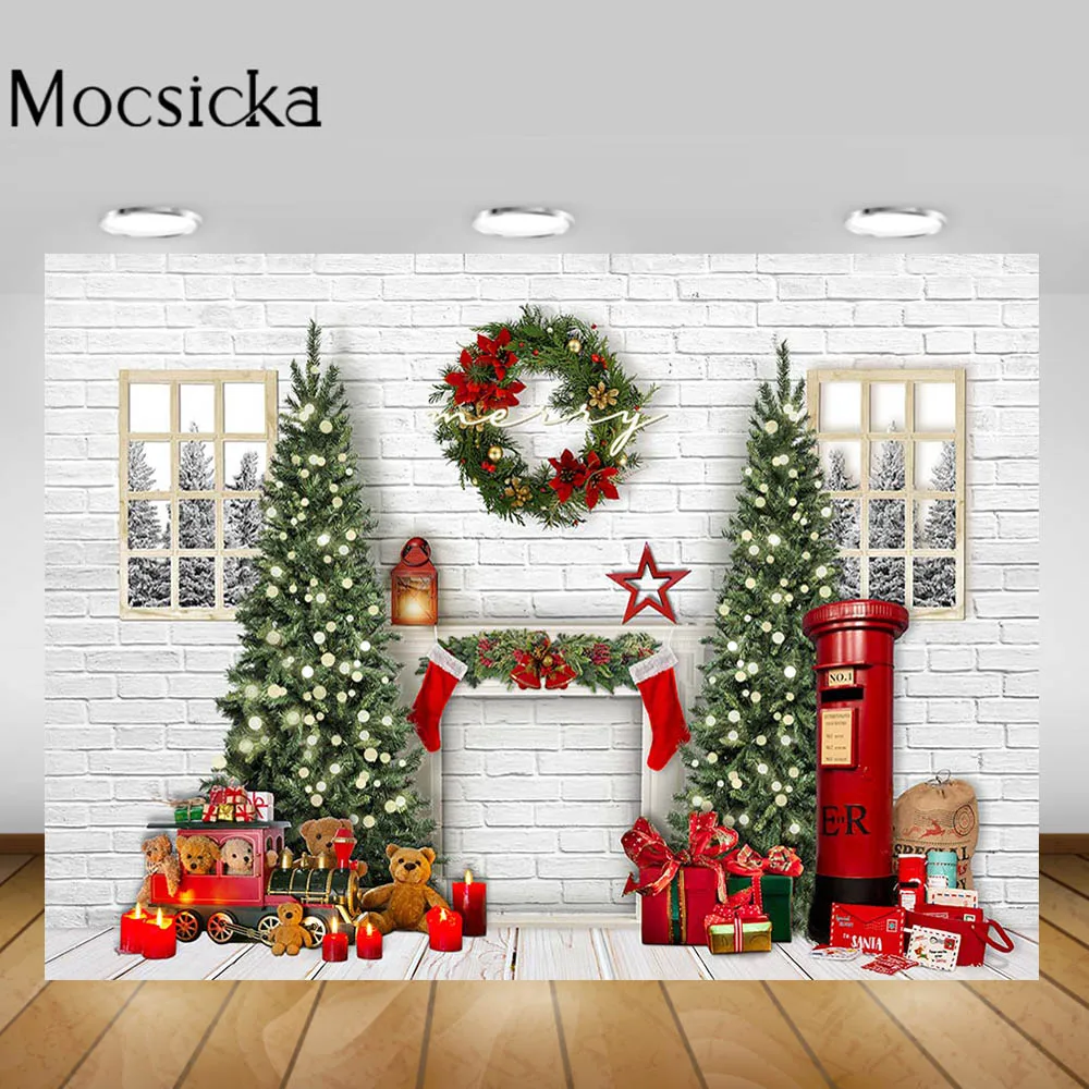 Mocsicka белая кирпичная стена фото фоны окно сосновая елка рождественский венок фото фон для фотостудии Рождественский Декор