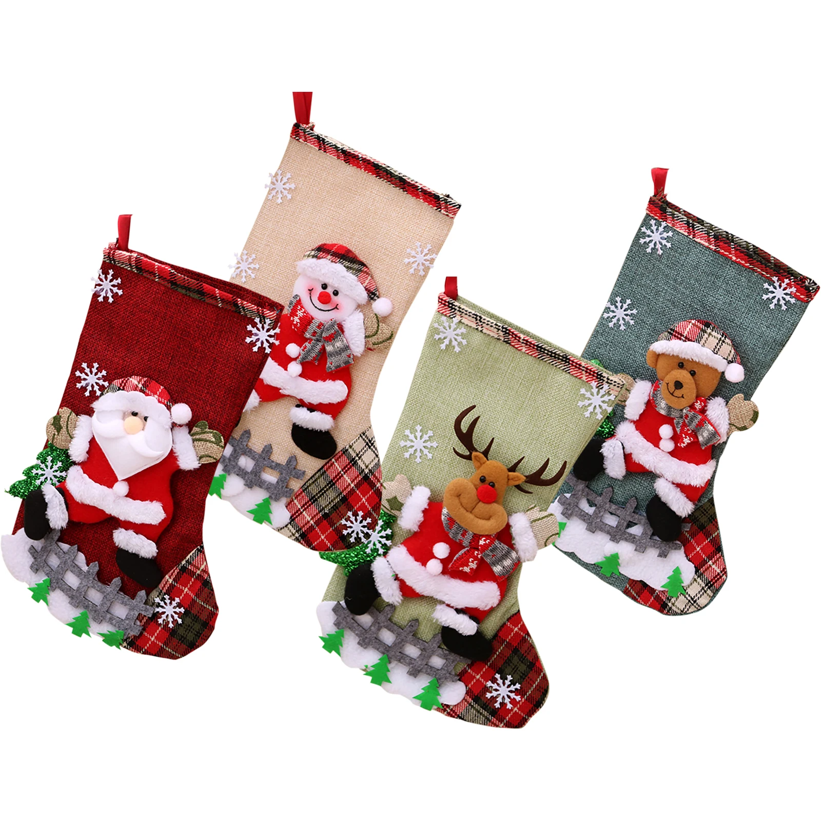 Рождественские чулки, снеговик, Санта-Клаус, лось, медведь, принт, ...