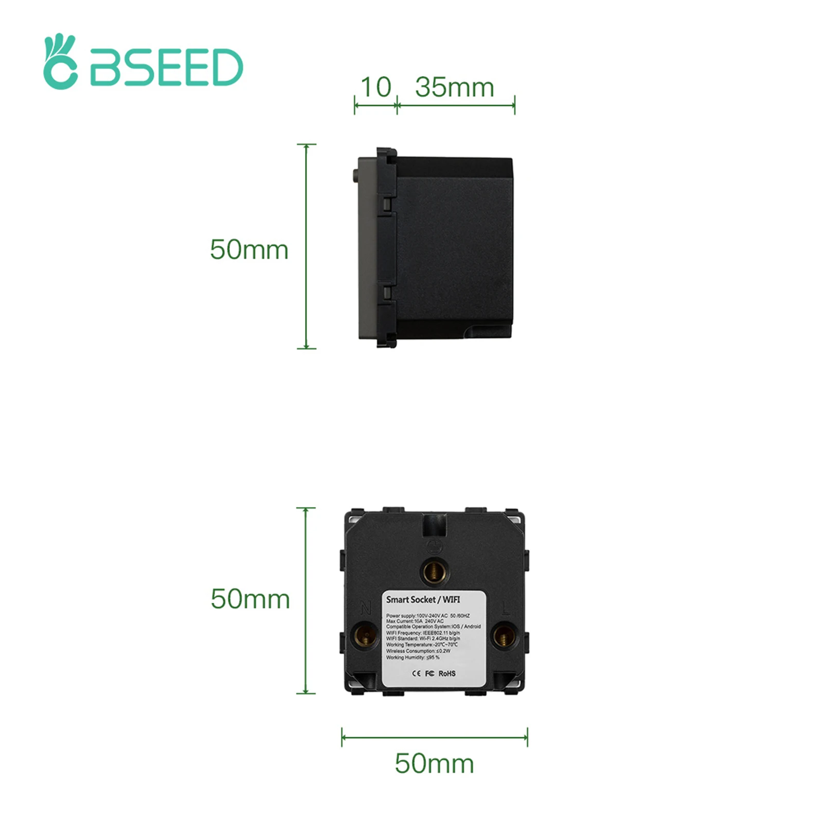 Умная розетка BSEED из пластика с поддержкой Wi-Fi и управлением че...