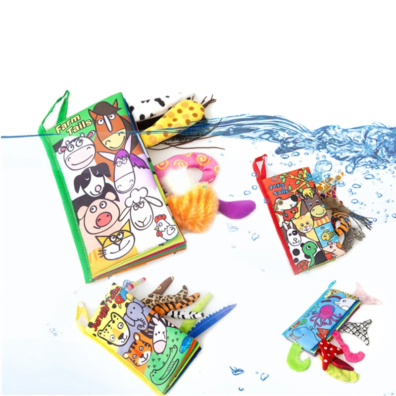 Тканевые книги с животными и хвостом для детей 0-12 месяцев, детска...