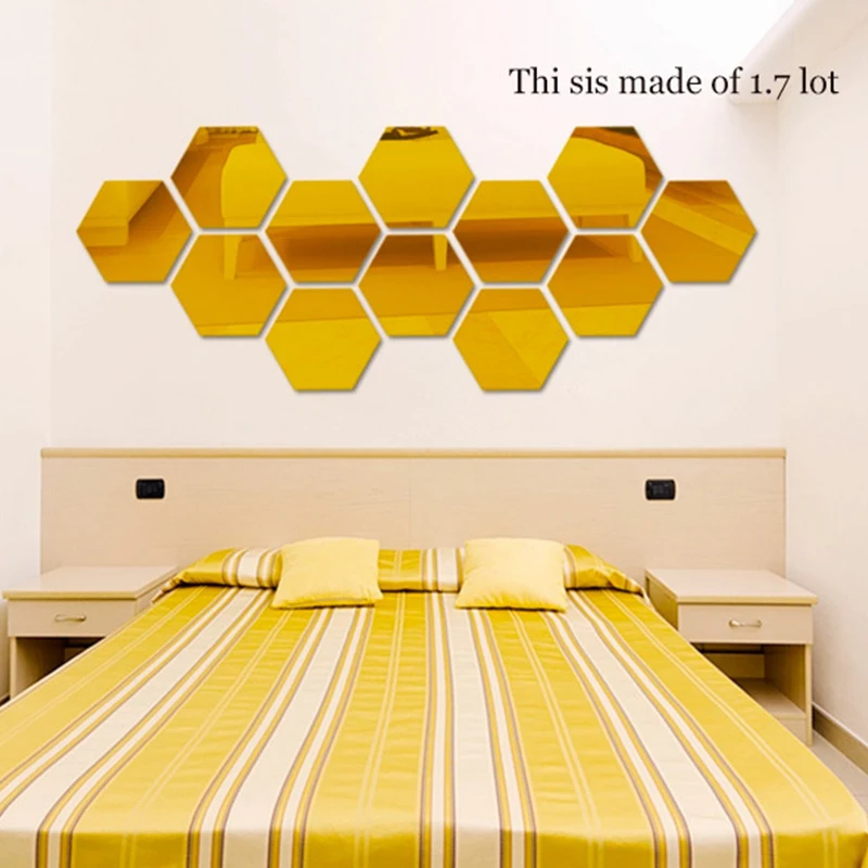 12 шт. DIY 3D зеркальная Настенная Наклейка s шестигранный Декор для дома зеркальная декоративная наклейка роспись