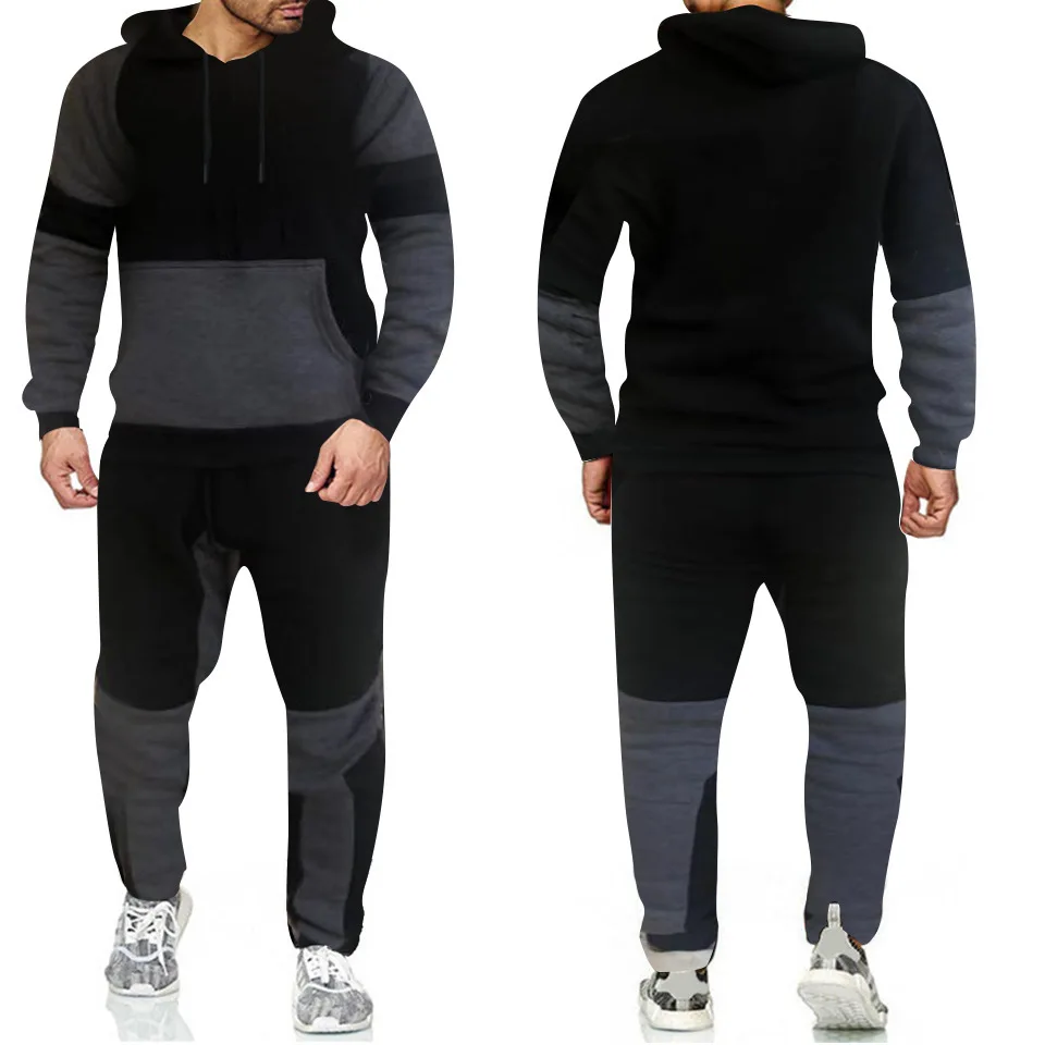 Костюм спортивный мужской из двух предметов, толстовка с капюшоном и штаны, свитшот, уличная одежда для бега