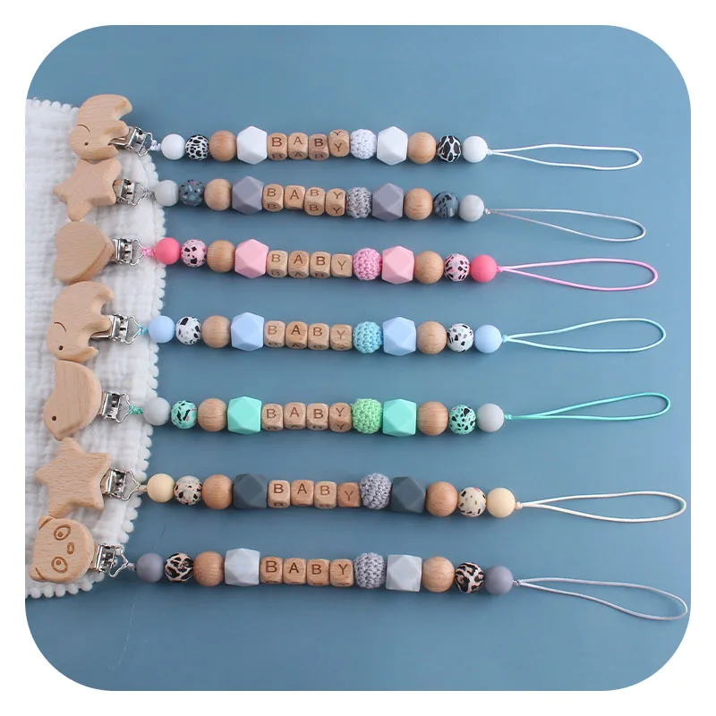 Персонализированные имени ручной работы силиконовые детские деревянные пустышки соски клип безопасное прорезывание зубов цепь Прорезыватель соски цепи держатель цепи