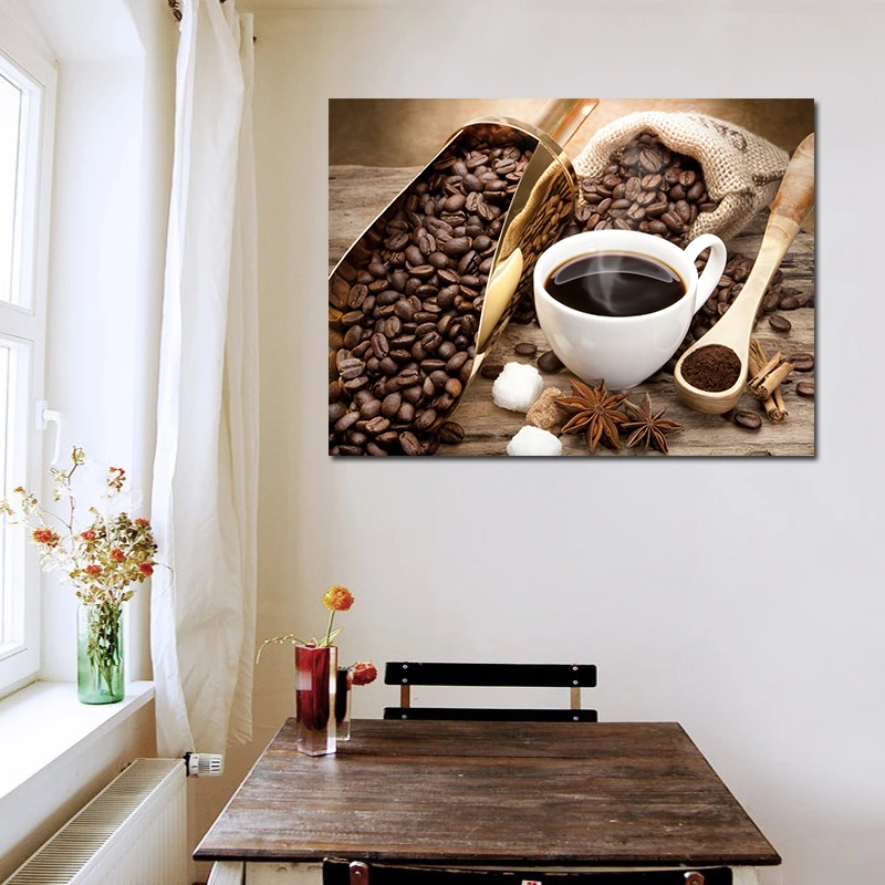 Современный постер на кофейные чашки, домашний декор на пару, кофейные зерна, картина, печать на кофейной чашке, холст, картина на стену для кафе, кухни