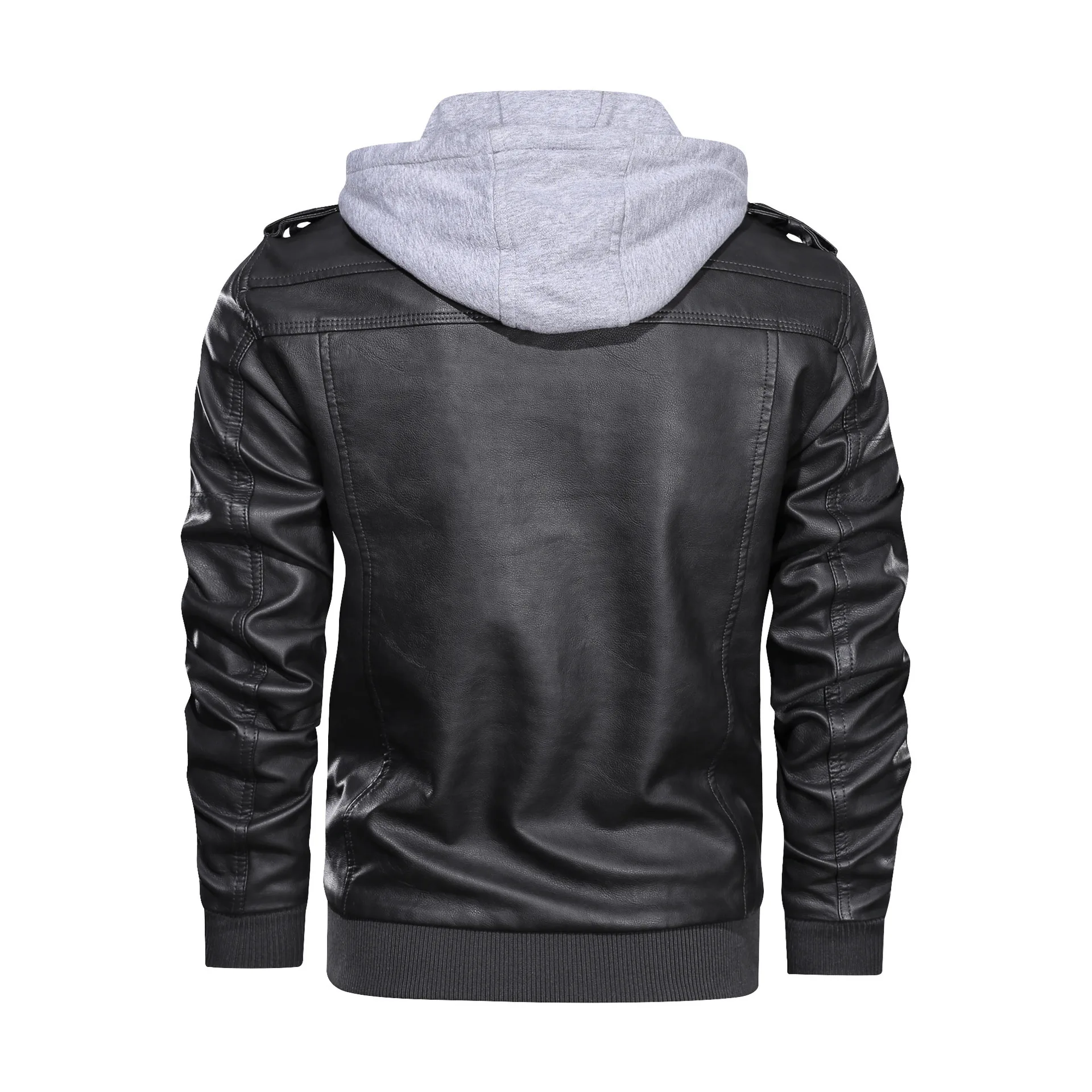 Мужская Осенняя кожаная куртка с капюшоном, мотоциклетная куртка из...