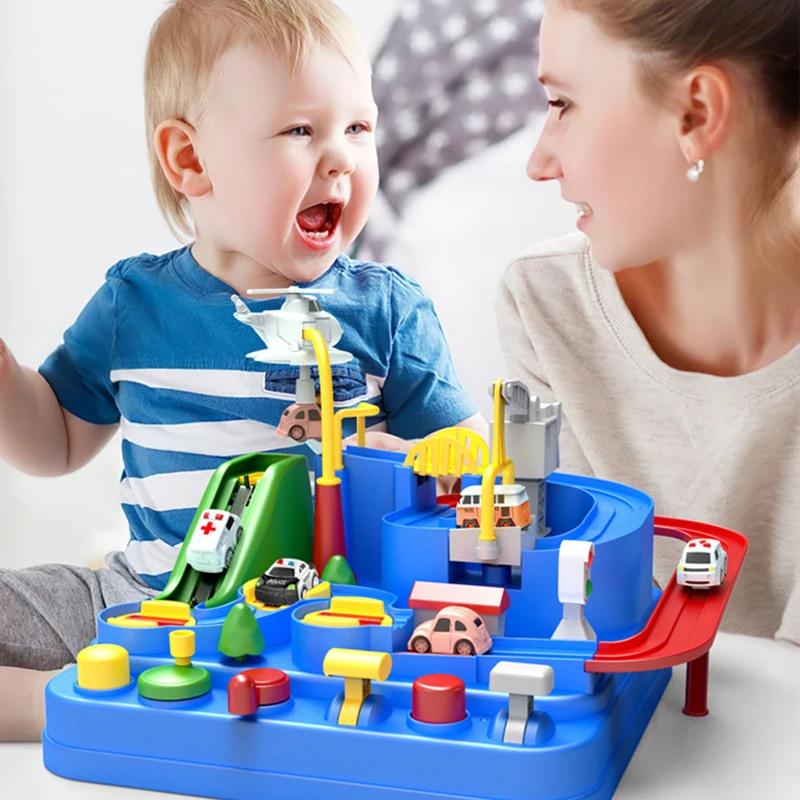 Железнодорожный трек, игрушки для детей, Монтессори, Детские гоночные автомобили, механическое приключение, настольная игра, рождественские подарки, игрушка