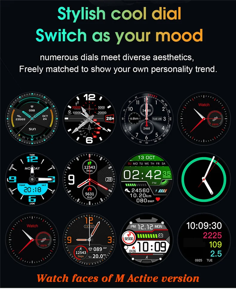 Умные часы для спорта, водонепроницаемые умные часы с пульсометром,...