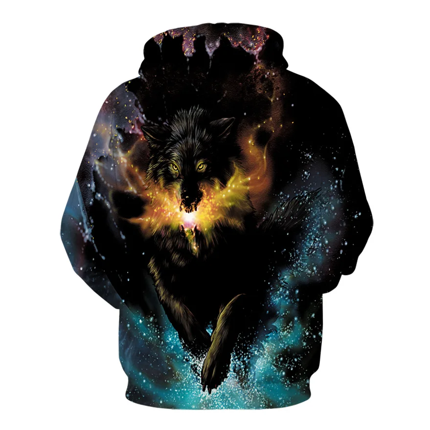 Толстовка с капюшоном для мужчин и женщин Space Galaxy Wolf, Модный...