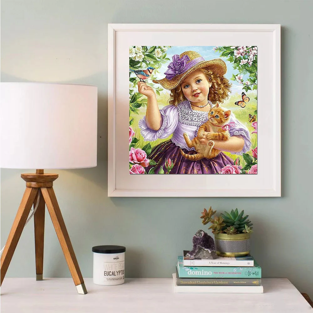 HUACAN Алмазная картина для девочек, полностью квадратная круглая Алмазная вышивка с котом, вышивка крестиком, распродажа, мозаика, портрет, декор для детской комнаты