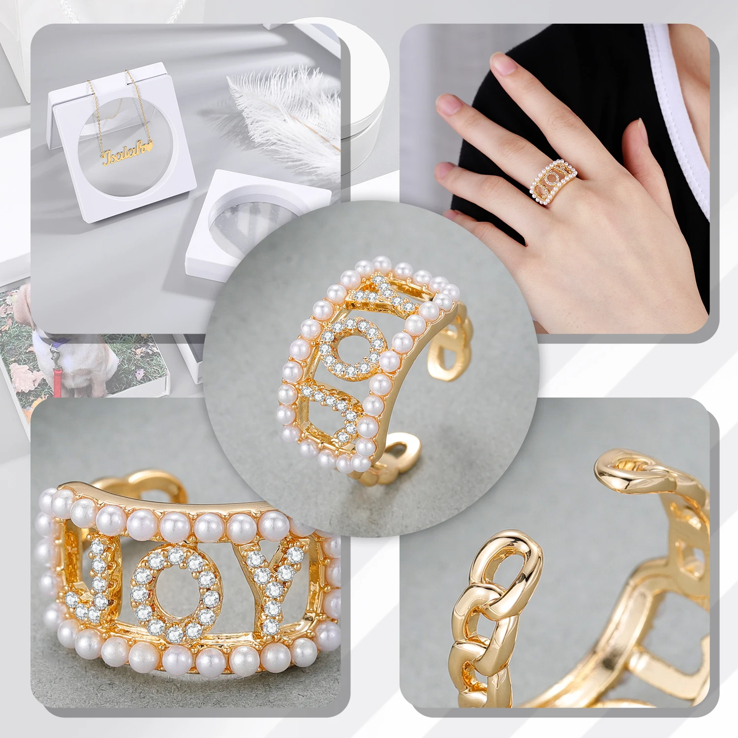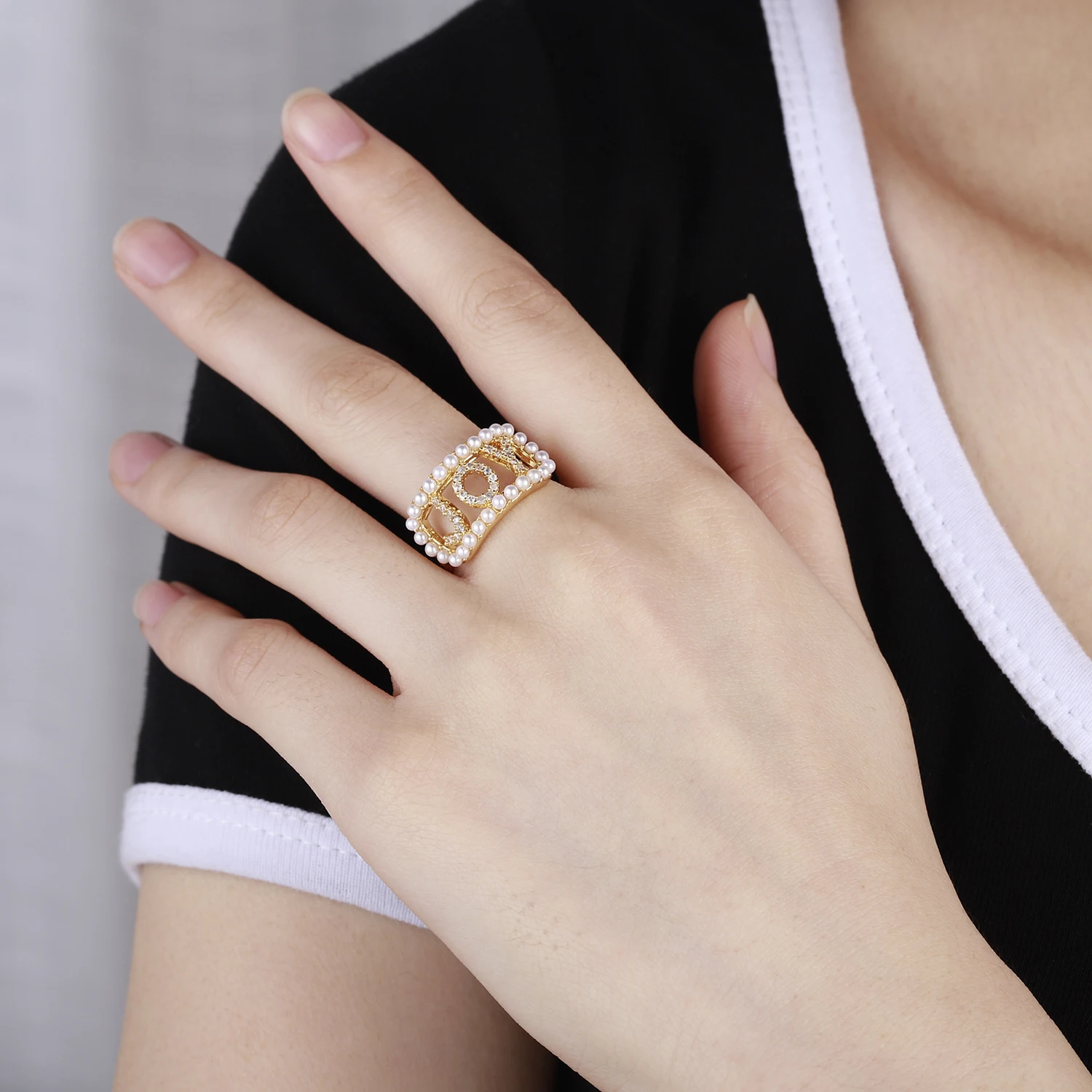 Кольца с именем на заказ, персонализированные ювелирные изделия из нержавеющей стали, циркониевое кольцо с жемчугом, модное регулируемое стильное Золотое кольцо для женщин