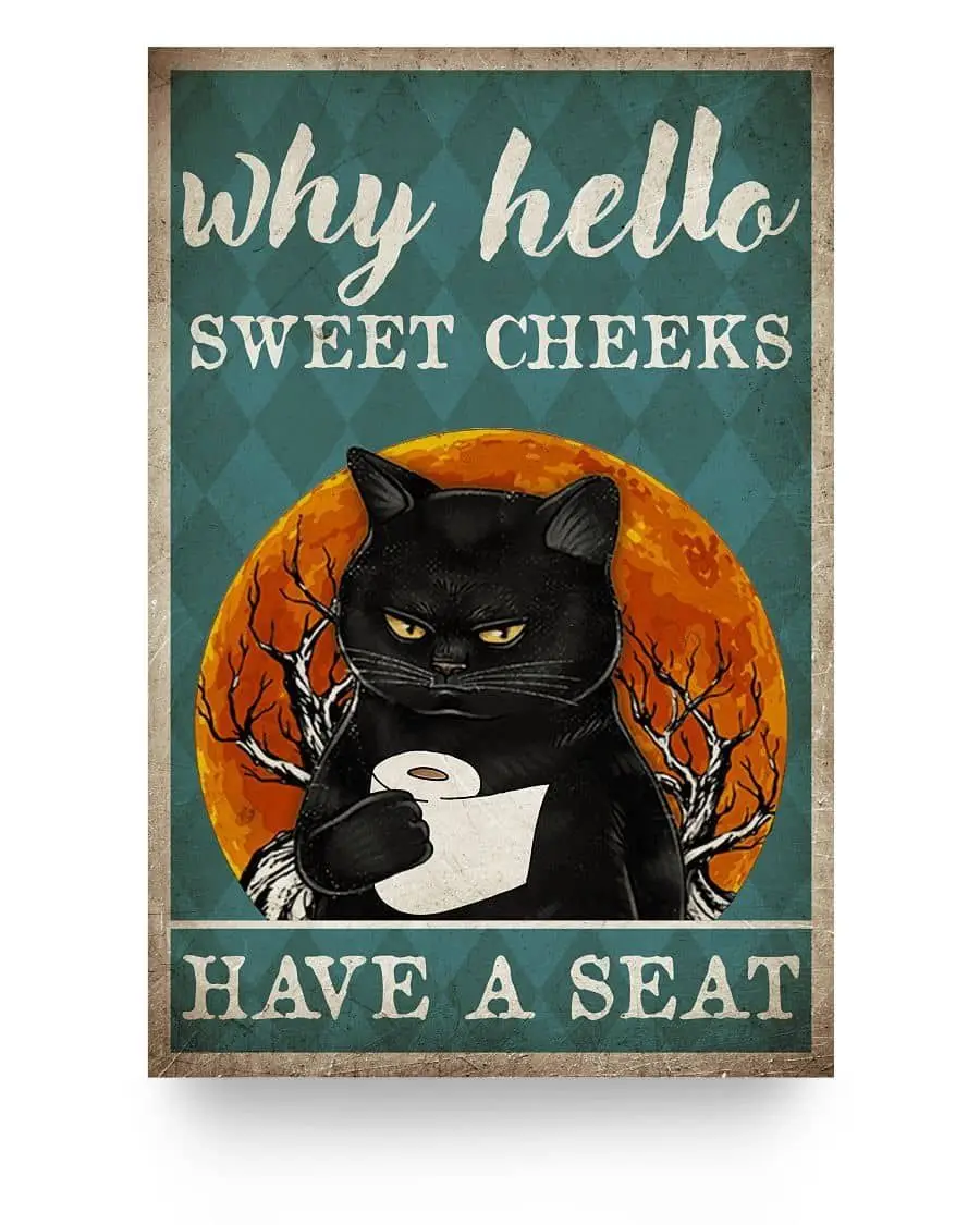 Постер с изображением черного кота, Забавный постер для ванной, с о...