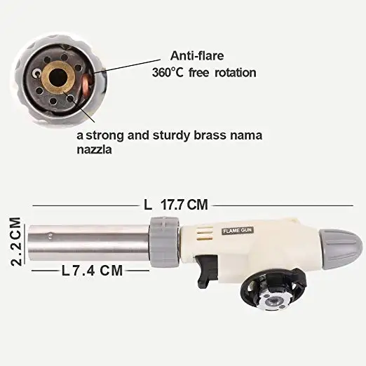 Кухонный фонарь, профессиональный ручной бутановый фонарь, зажигалка для приготовления пищи, барбекю, выпечки, DIY пайкиОсобенности:-- Изготовлен из АБС-пластика для обеспечения эргономичного комфорта.-- Качественный кухонный фонарь, который добавляет сложного вкуса и прекрасную текстуру, чтобы идеально закончить ваши стейки, рыбу, курицу и овощи всего за несколько минут.-- Этот продукт включает в себя легковоспламеняющиеся газы и высокотемпературное пламя, поэтому дети не могут играть. Обычно необходимо разместить в месте, где дети не могут его получить.Спецификация:Материал: АБС + электронные компонентыЦвета: белыйСтиль: практичныйДлина: 17,5 см/6.8inВыходная мощность: 960 ккал/1,11 кВт/3809BTUЗначение сгорания: 80 Гц/чВес брутто: 142 гТемпература пламени: 1350 температура пламени регулируетсяМожет быть оснащен газовым баком: Кассетный бутановый газовый баллон (покупателям необходимо взять с собой)Расход газа: 50 г ~ 140 г/ч. Каждый бак газа может использоваться в течение 1,6 часов до 2 часов. После того, как газ будет использован, замените его на новыйПосылка в комплекте1 х кухонный фонарь (без бутанового газового бака)ОбещаниеЕсли у продукта есть какие-либо проблемы с качеством, пожалуйста, свяжитесь с нами, мы поможем вам решить проблему как можно быстрее.