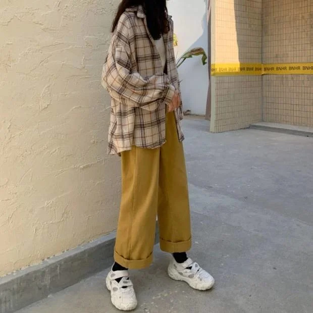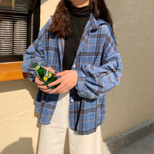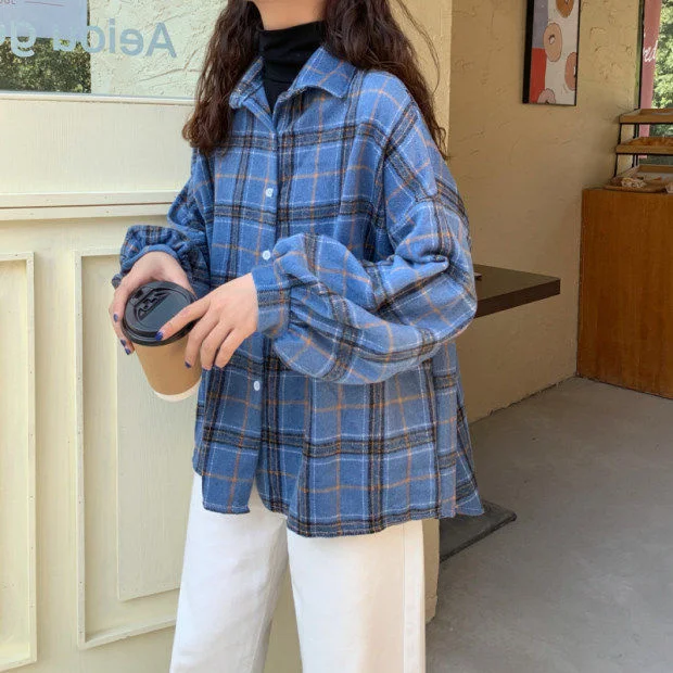 Женская рубашка на пуговицах, осенняя клетчатая рубашка с воротником, универсальная рубашка с длинным рукавом, Свободная Женская шикарная Новинка