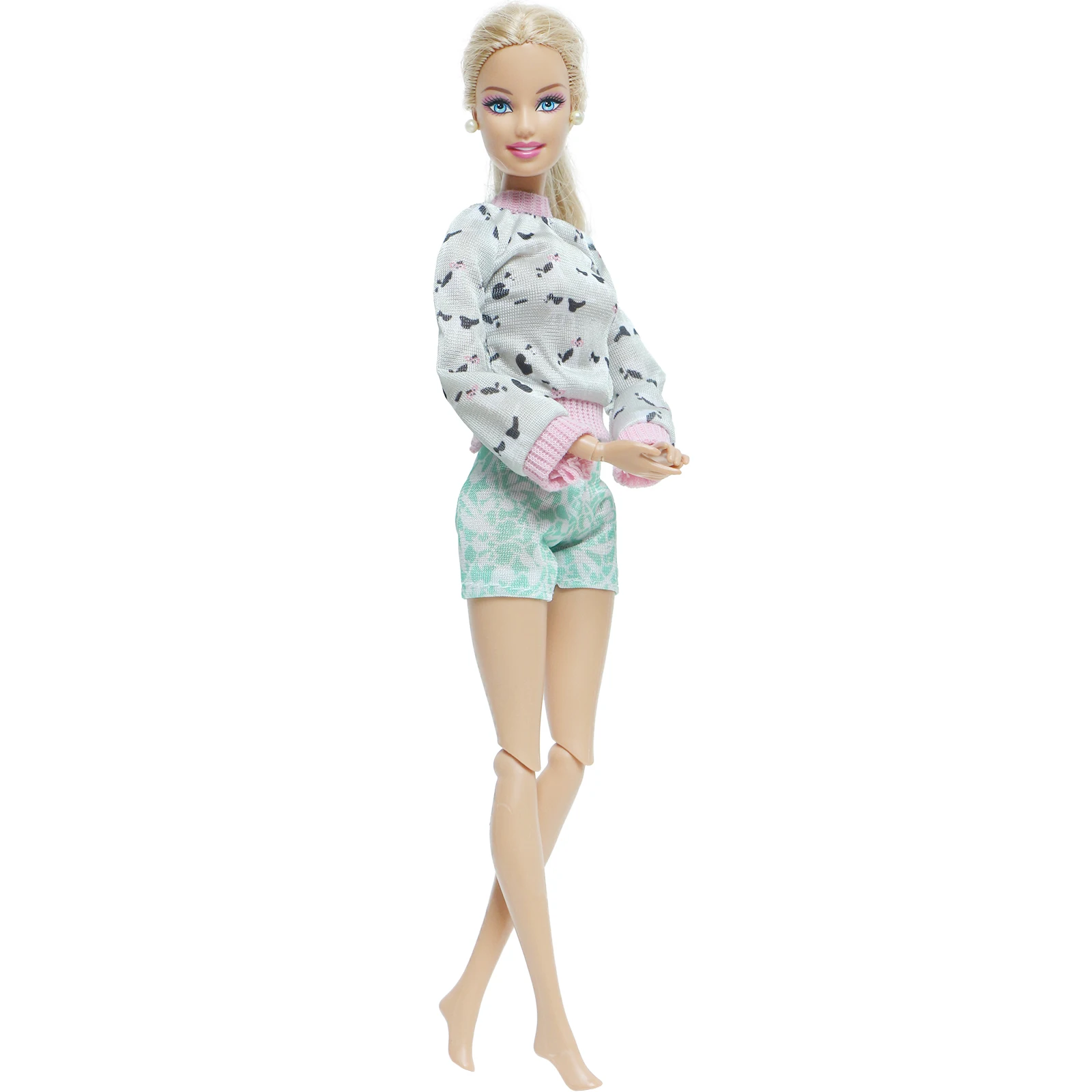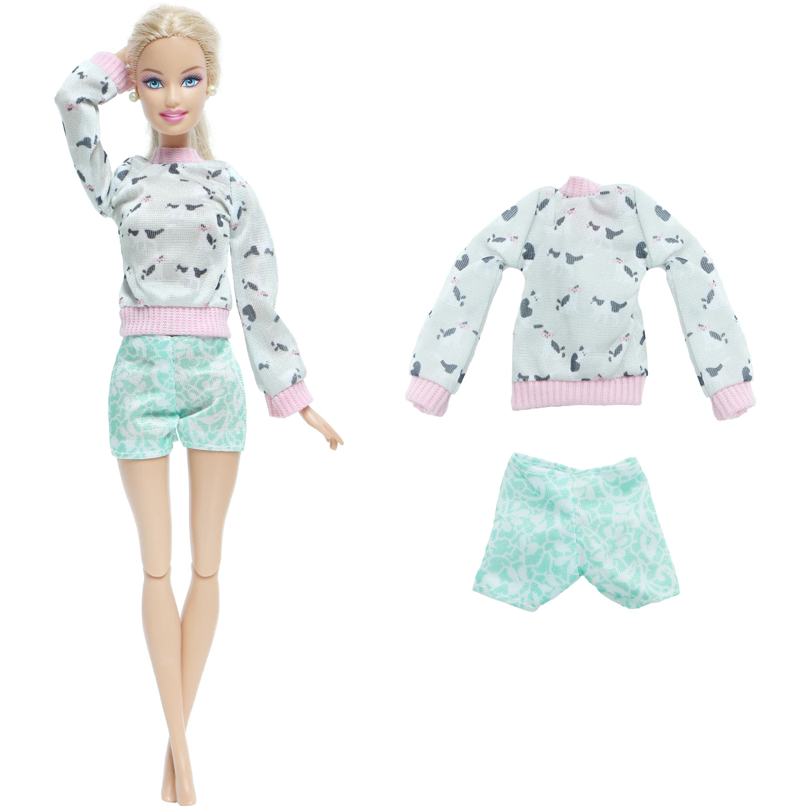 1 комплект одежды для куклы ручной работы BJDBUS, футболка с длинными рукавами и изображением животных, зеленые короткие брюки, Одежда для куклы Барби, аксессуары, игрушки