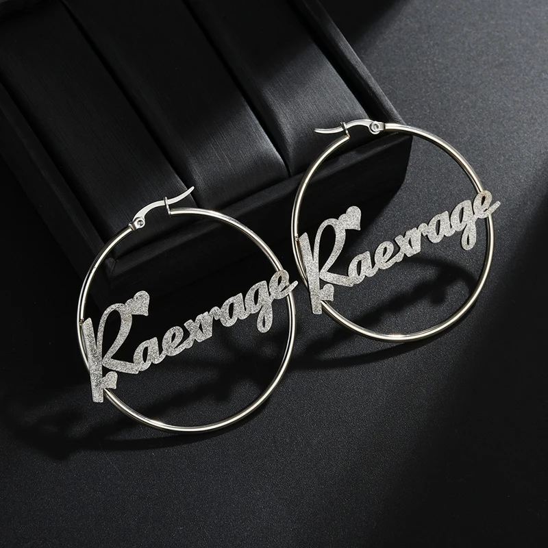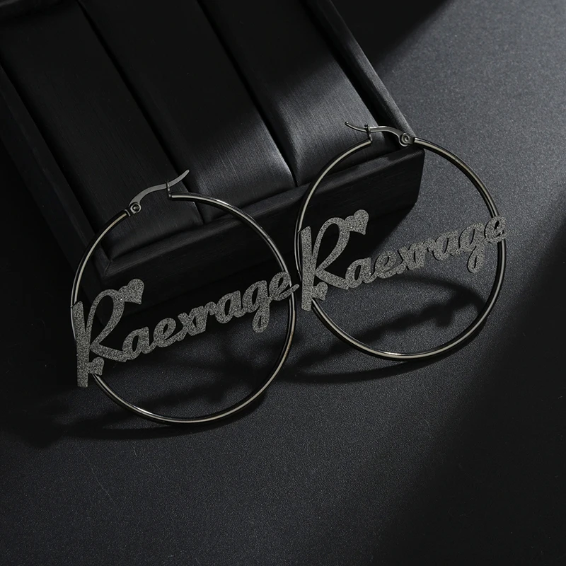 1 пара, серьги-кольца из нержавеющей стали с надписью