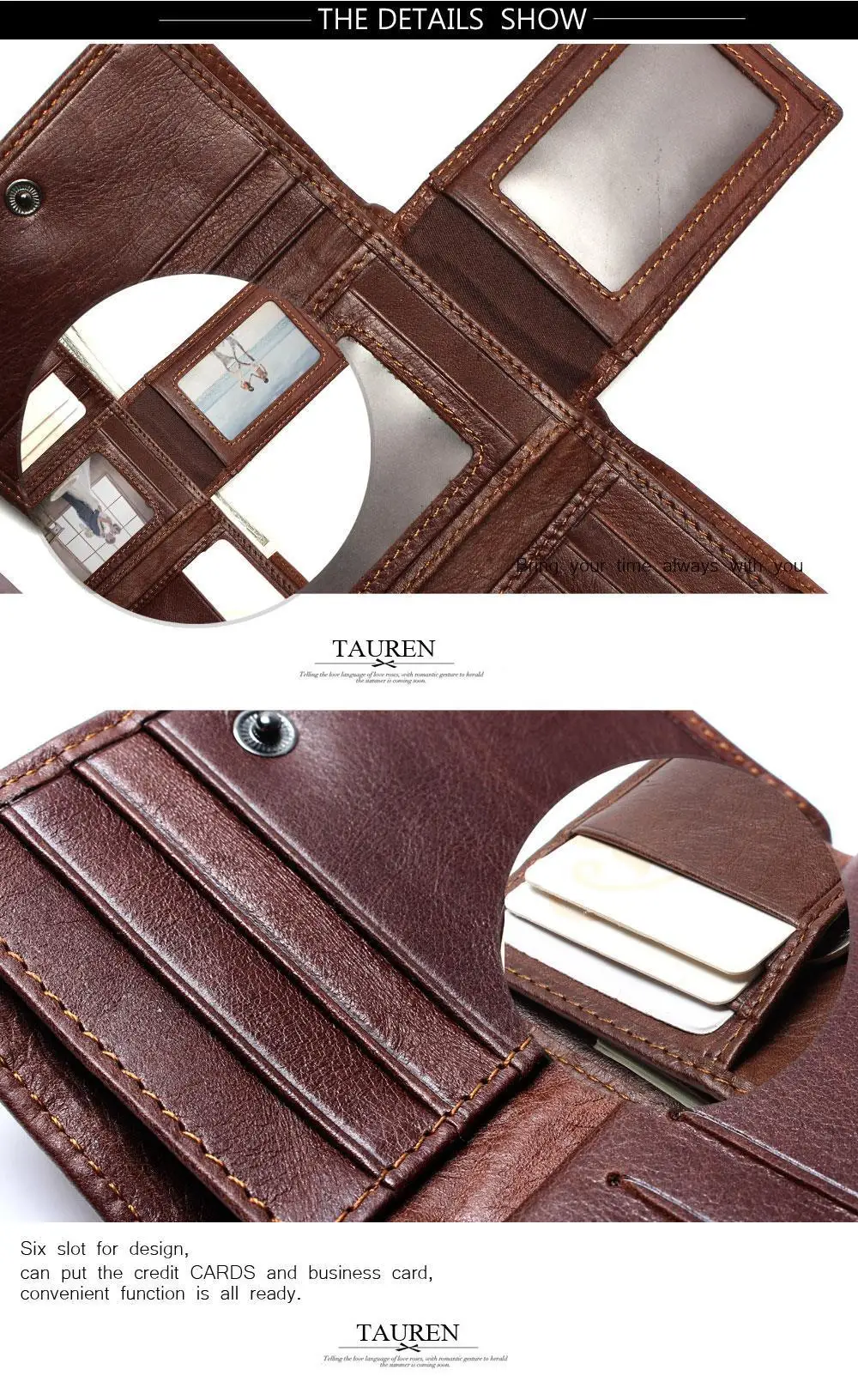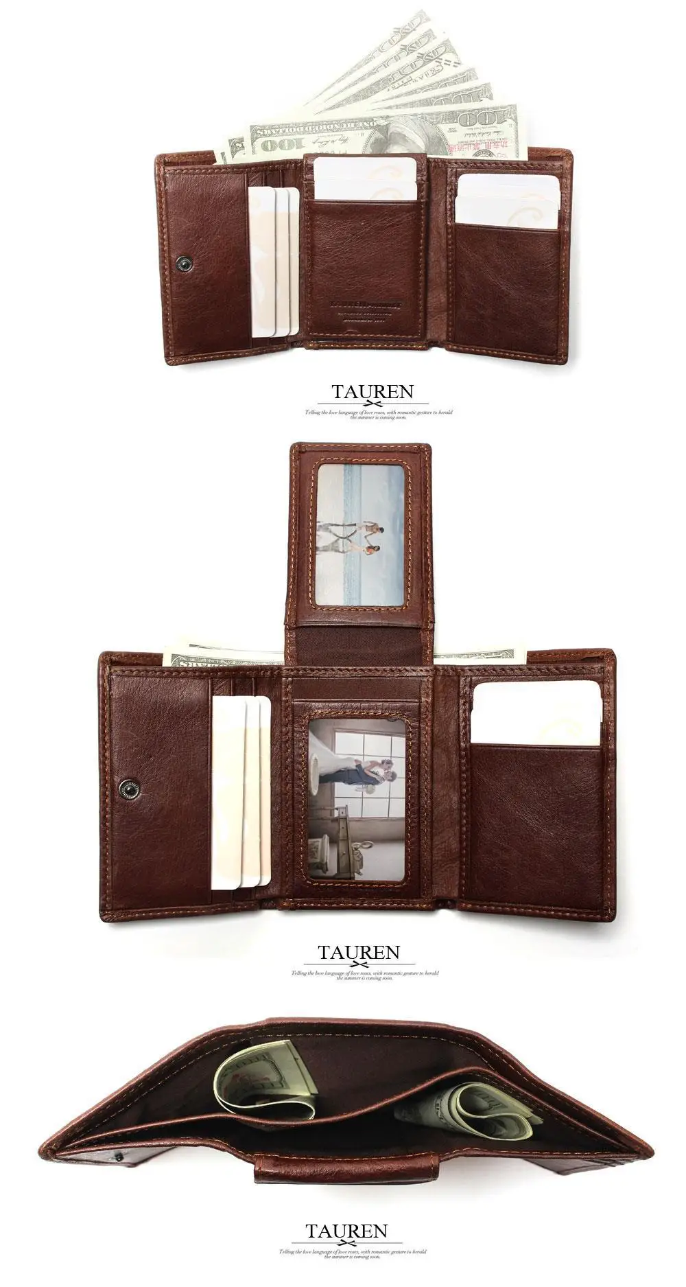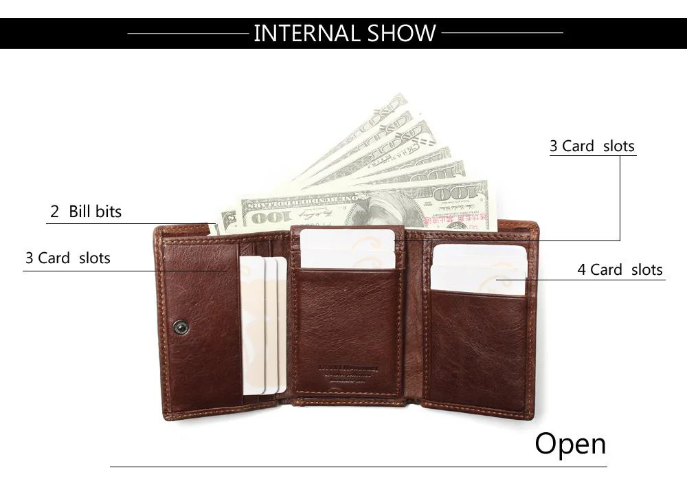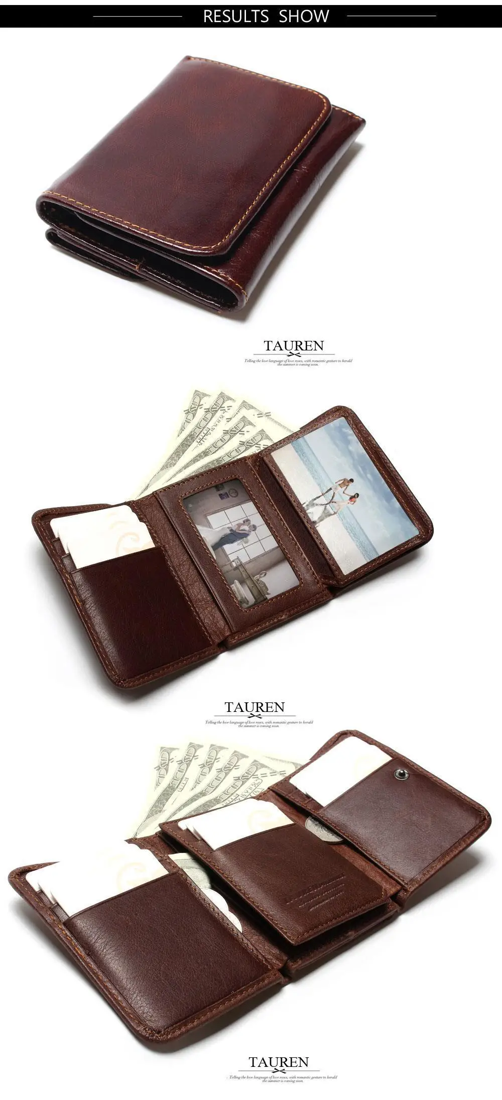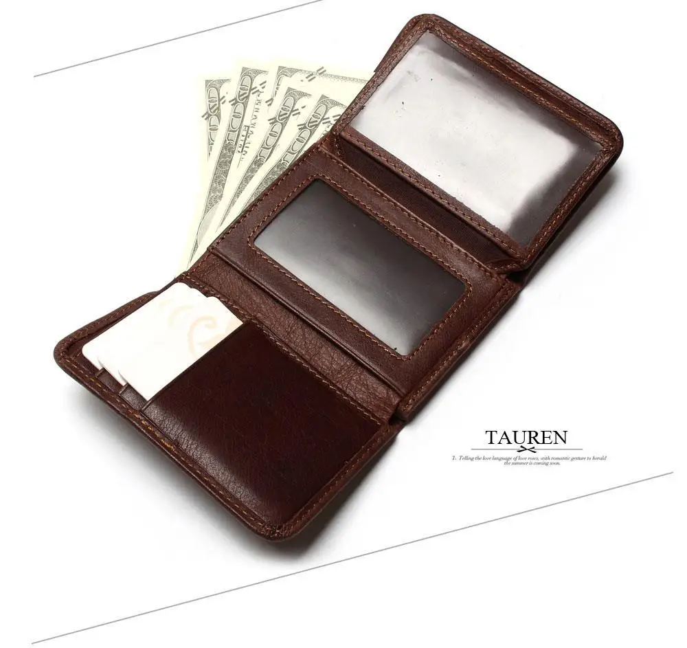 Мужской кошелек из натуральной кожи, деловой складной бумажник, роскошный хипстерский держатель из воловьей кожи для кредитных картудостоверений личности, с отделениями для монет