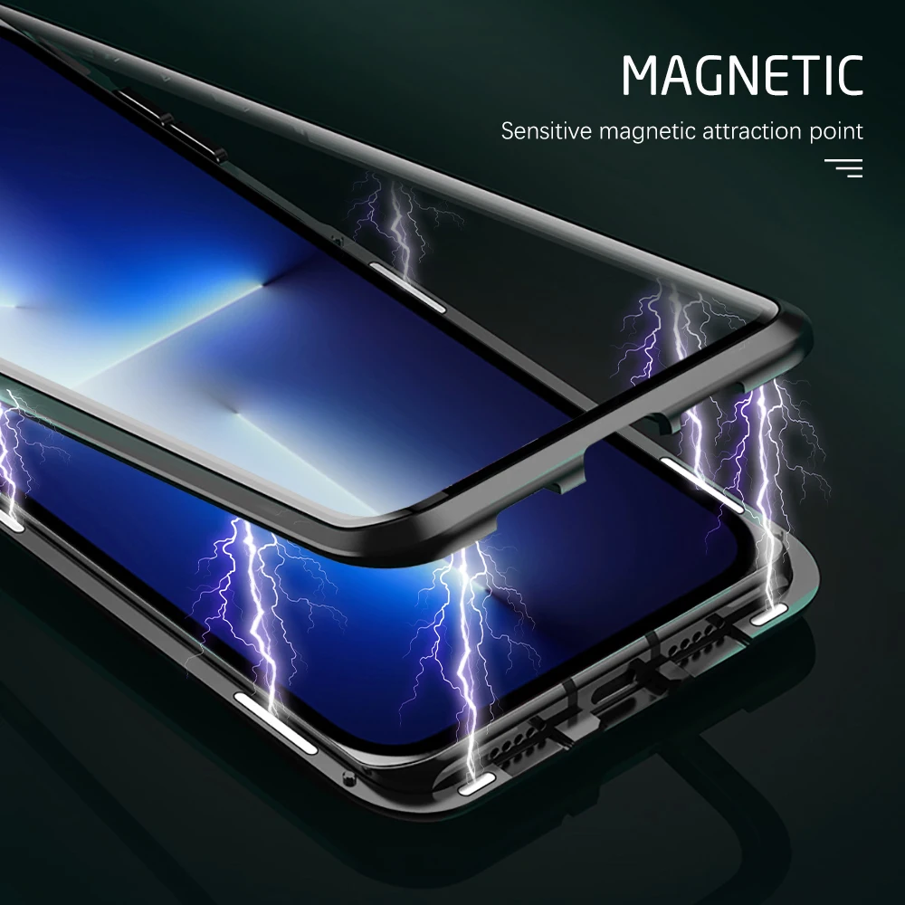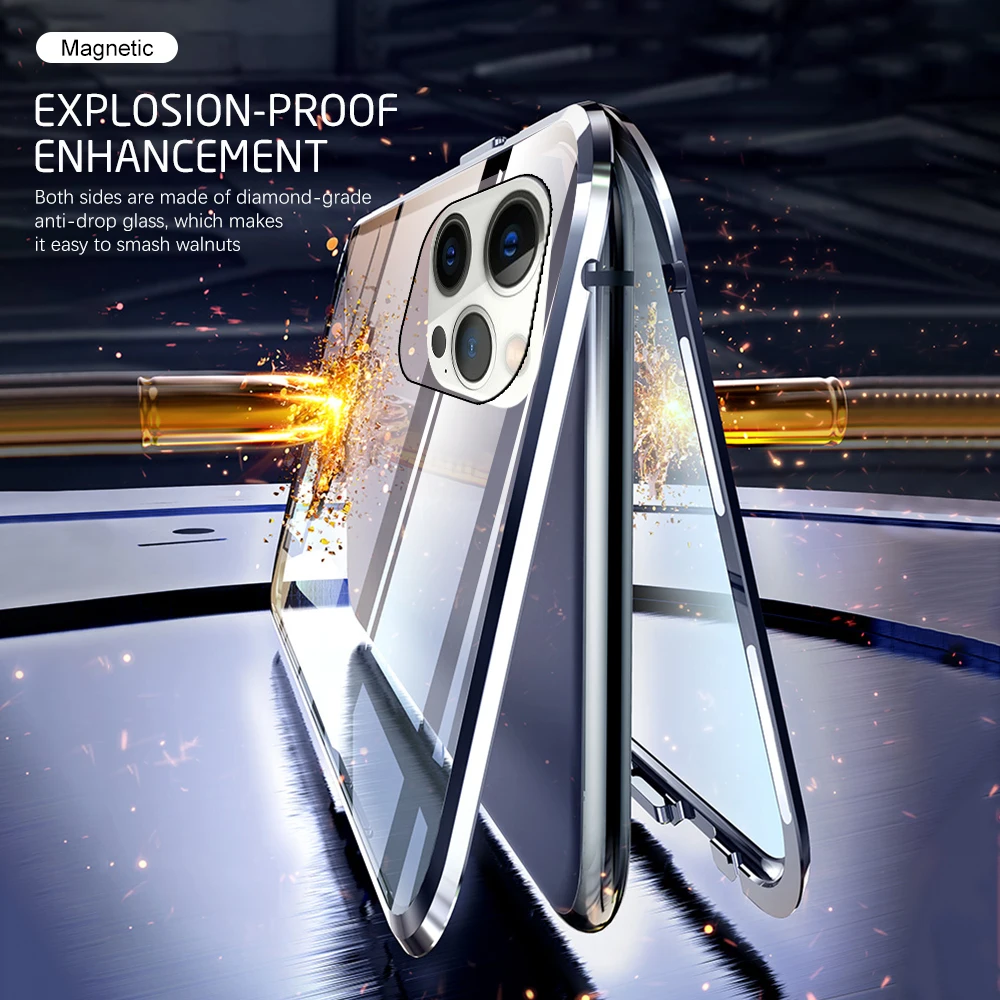 Для iphone13 pro max чехол 360 ° двухсторонний стеклянный металлический бампер Магнитный Флип iphoen iphoon aifon 13pro 13 pro max mini coque funda