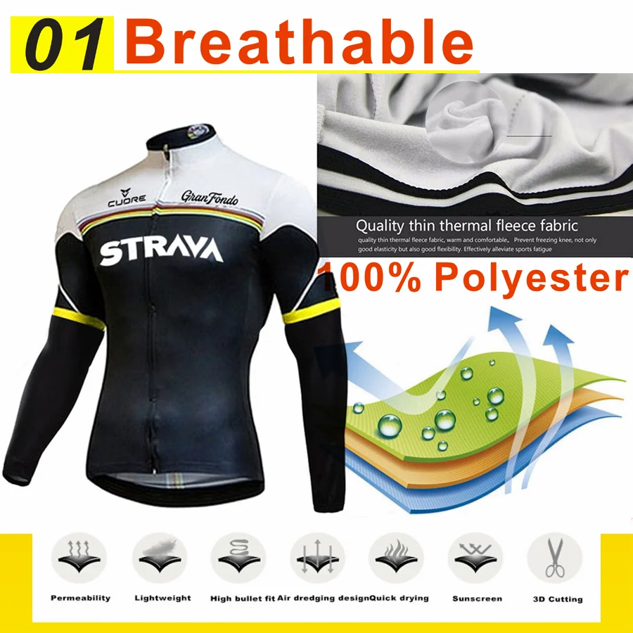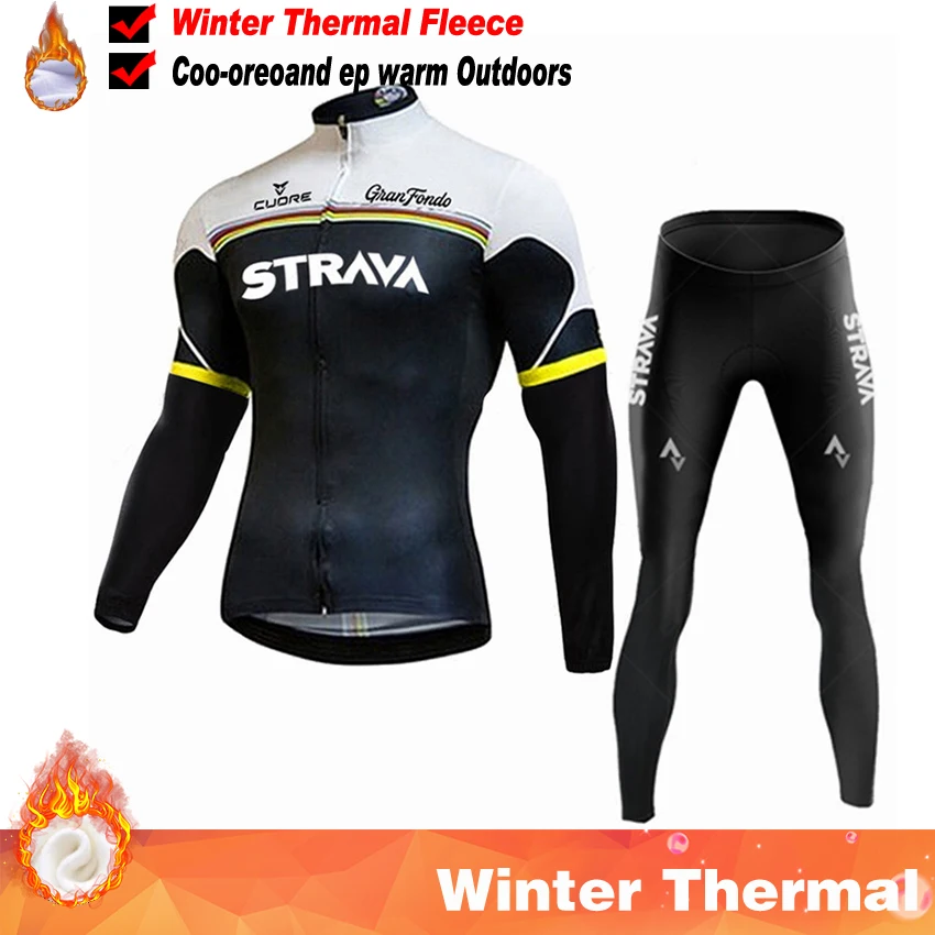 Трикотажный комплект для велоспорта STRAVA Team, Зимняя Теплая Флис...
