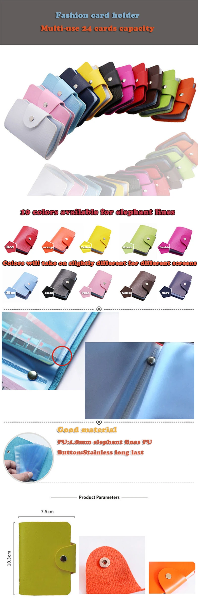 Классический Простой деловой мужской и женский маленький чехол из искусственной кожи с защелкой и 24 отделениями из ПВХ для удостоверения личности и кредитных карт