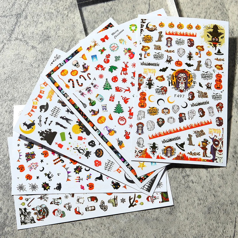 Новые наклейки для ногтей на Хэллоуин, Рождество, наклейки для ногтей, украшение снежинки, наклейки для ногтей, украшение для ногтей, наклейки для маникюра