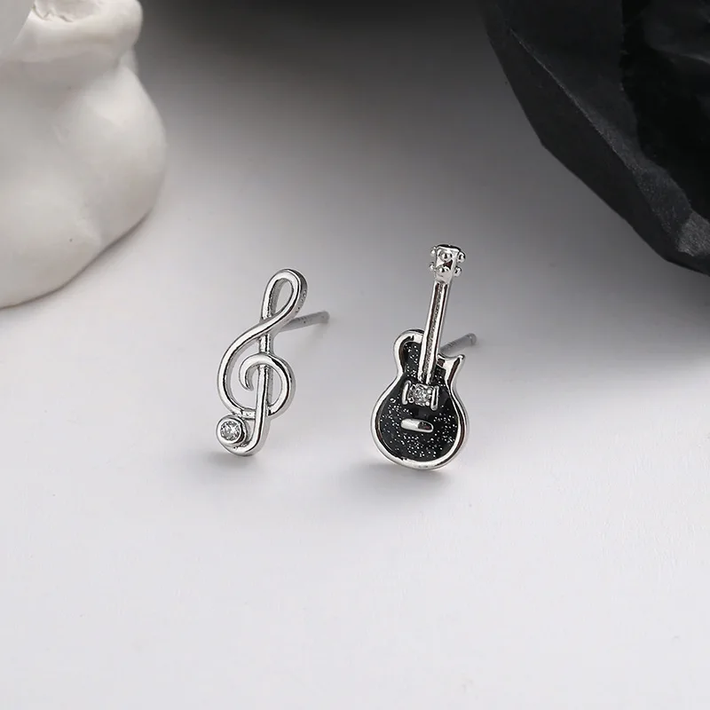 QMCOCO серебряные Асимметричные музыкальные серьги-гвоздики женские панк хип-хоп геометрические гитарные серьги-гвоздики для девочек аксессуары для вечерние подарок