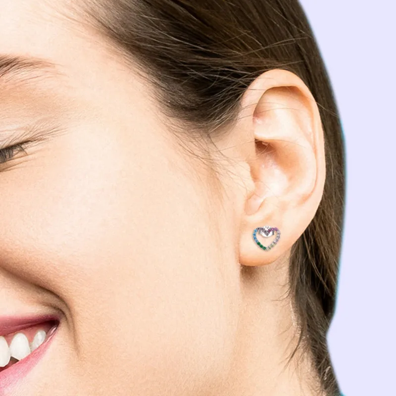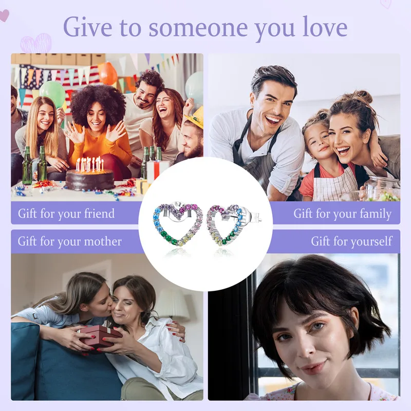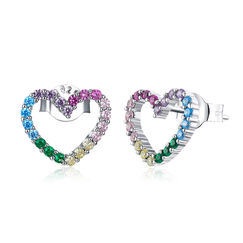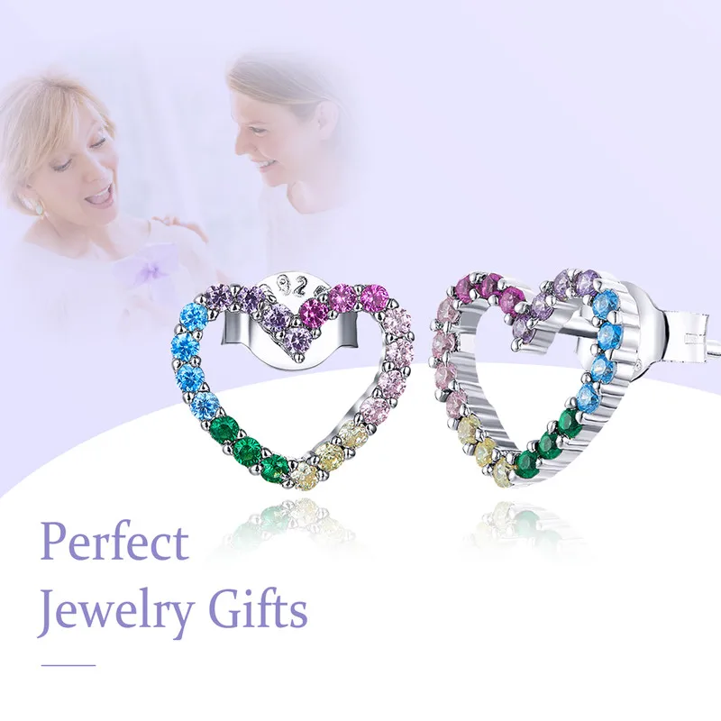 Пара цветные циркониевые серьги радужные подходят к оригиналу Pandora посеребренные Свадебные фестивальные серьги-гвоздики в форме сердца ювелирные изделия для женщин подарок Упаковка:Пара сережек