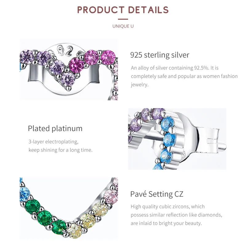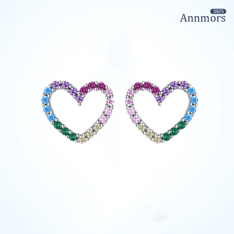 AnnmorsColor циркониевые серьги Радуга подходит для оригинального Pandora посеребренные Свадебные праздничные серьги-гвоздики в форме сердца ювелирные изделия для женщин подарок