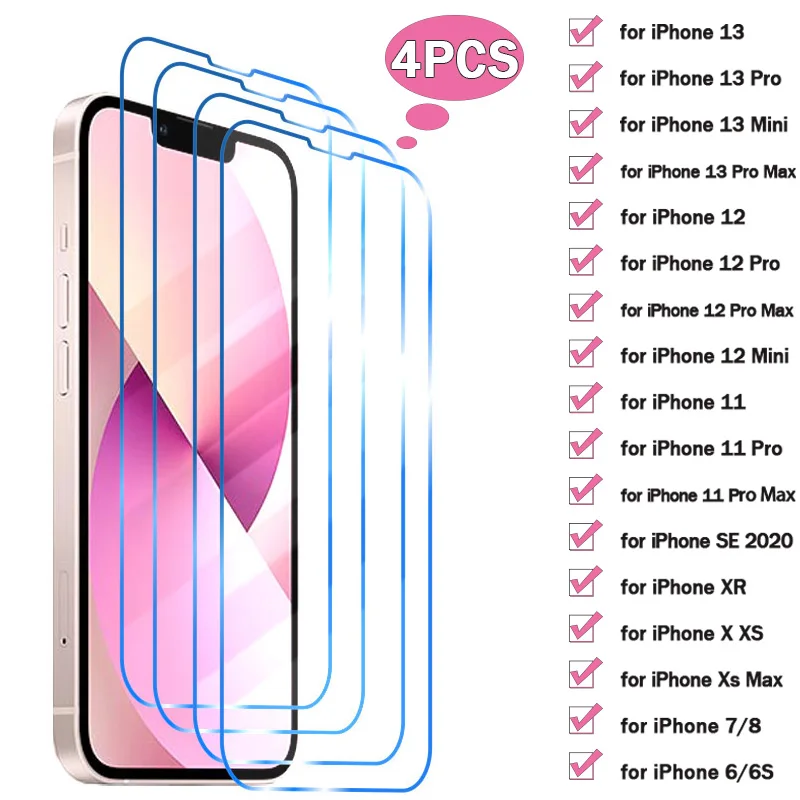 4 шт. Защитное стекло для iPhone 13 12 11 Pro Max 13 12 Mini Защита экрана для iPhone XR XS Max X SE 2020 7 8 6S Plus 6 стекло-