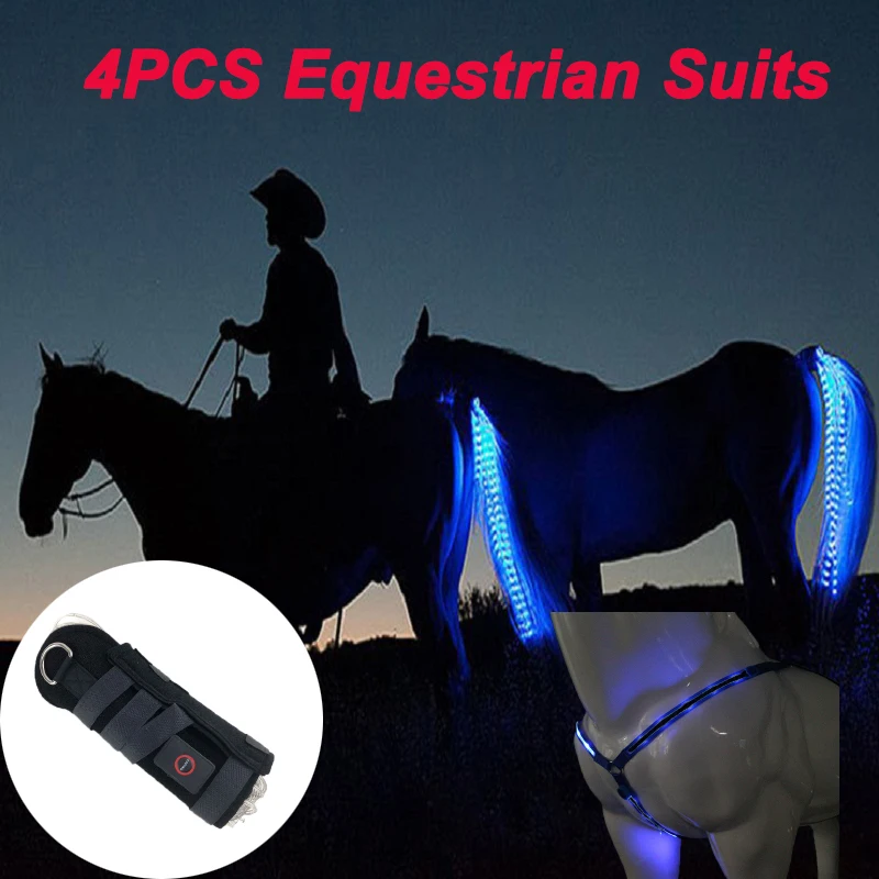 3 шт. светодиодный светящийся Конный костюм для верховой езды, ночное освещение, видимый Конный инвентарь, конный инвентарь, конные ножки, нагрудные хвосты, ремни