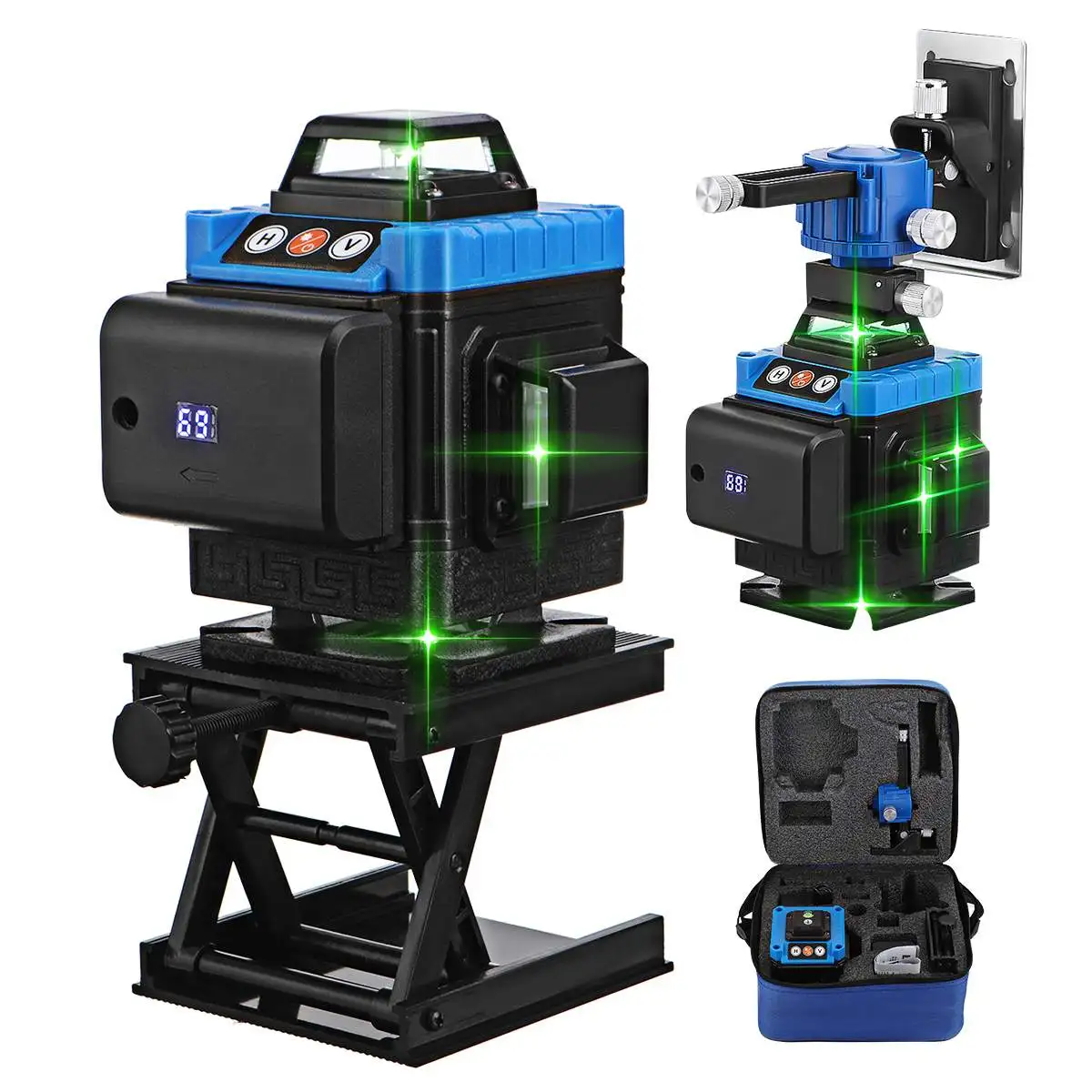 Лазерный уровень, 16 линий, 4D светильник зеленый свет, светодиодный дисплей, автоматическое самовыравнивание, Лазерные уровни на 360 , горизонтальные, вертикальные, перекрестные измерительные инструменты