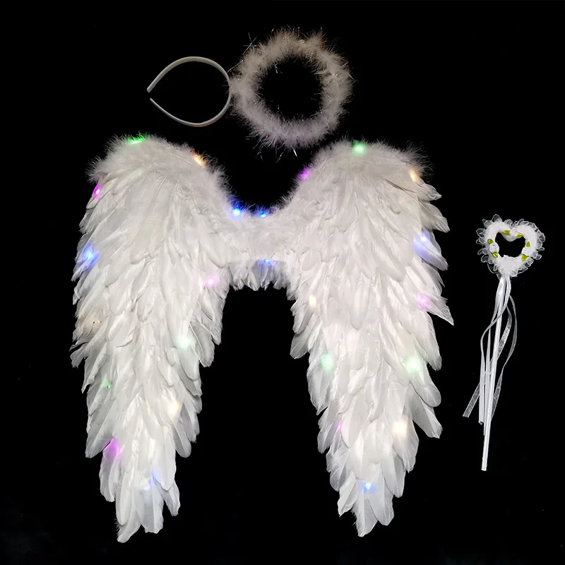 Женские СВЕТОДИОДНЫЕ Светящиеся Крылья ангела, белые крылья пера ангела для косплея, светящийся подарок на день рождения, фотоаксессуары 2022