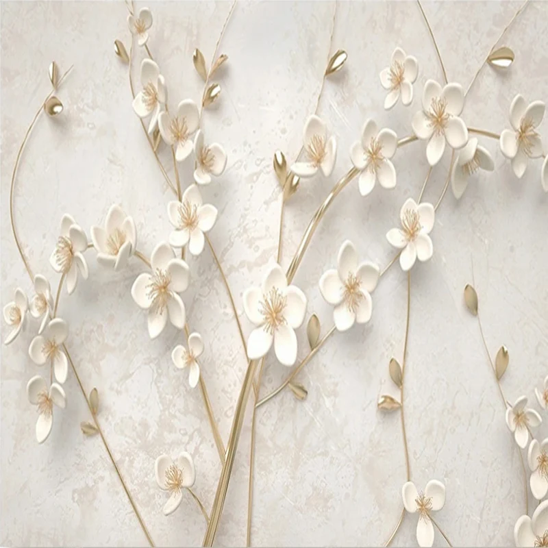 Фотообои на заказ, современные тисненые 3D белые цветы, ветки, обои для спальни, гостиной, настенное покрытие, украшение для дома