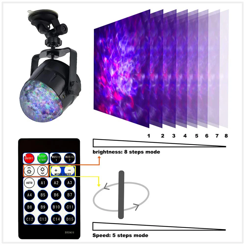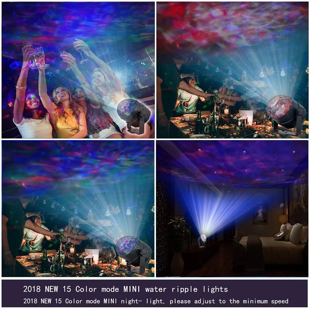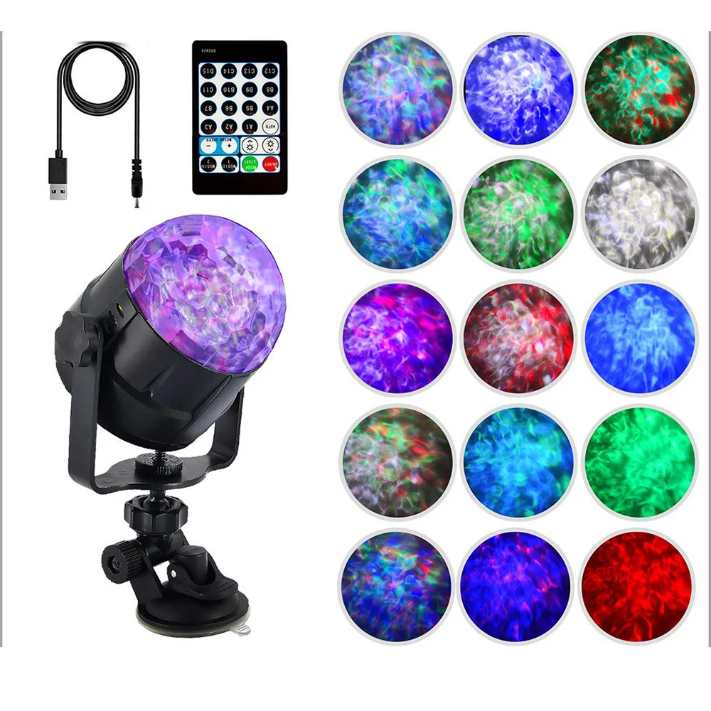 RGB диско-шар светильник USB, 5 В, изменение цвета, миниатюрная светодиодная волна воды, пульсация, сценисветильник, лампа для KTV, бара, автомобиля, клуба, караоке