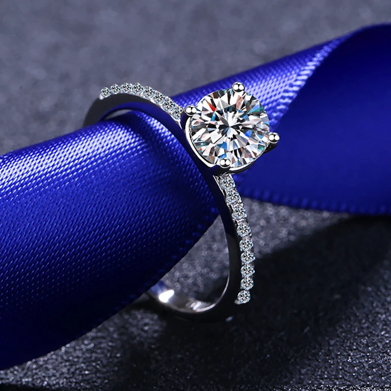 Обручальное кольцо с муассанитом женское, классическое свадебное кольцо с 4 зубцами из стерлингового серебра с бриллиантами, изящное Ювелирное Украшение
