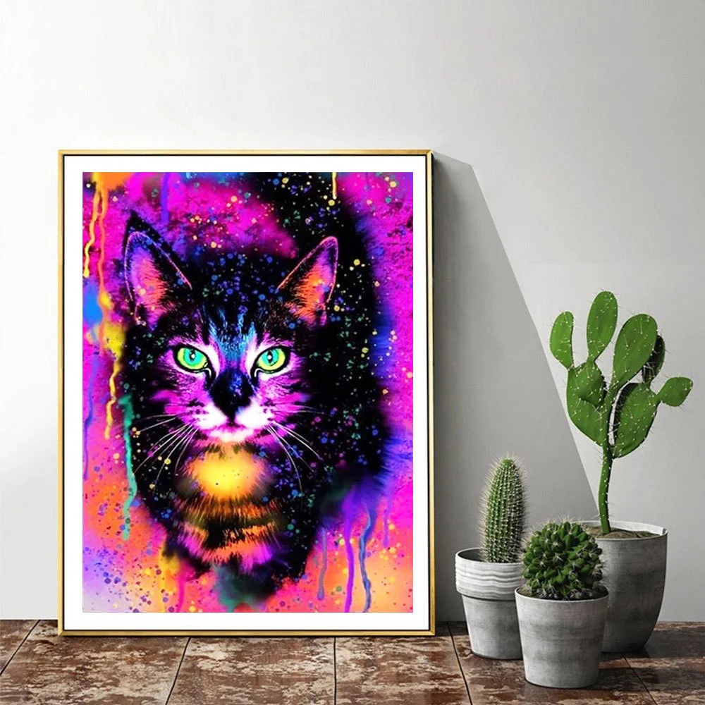 HUACAN 5D алмазная вышивка кошка полная дрель квадратная Бриллиантовая мозаичная фигурка животного картина Стразы Декор для дома