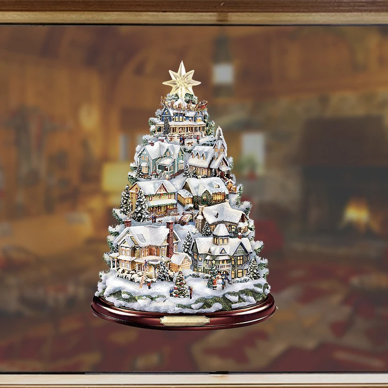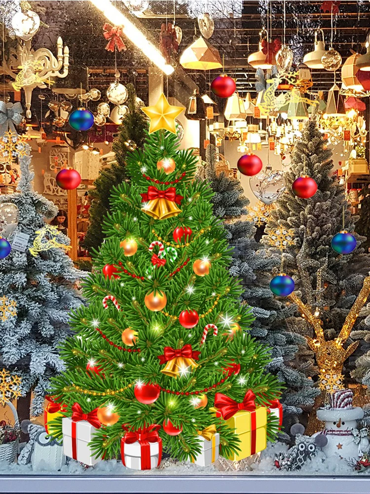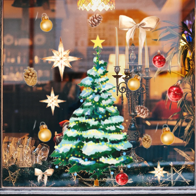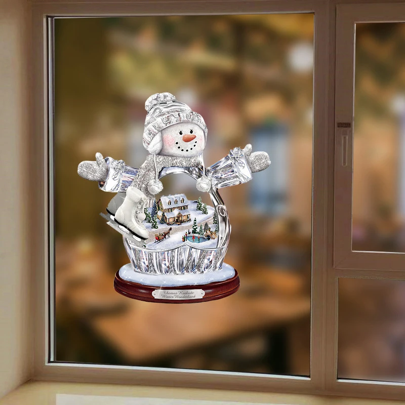 2022 Рождественская наклейка, Хрустальная елка, Санта-Клаус, снеговик, вращающаяся наклейка, наклейка на окно, зимнее Новогоднее вечерние ничное украшение для дома